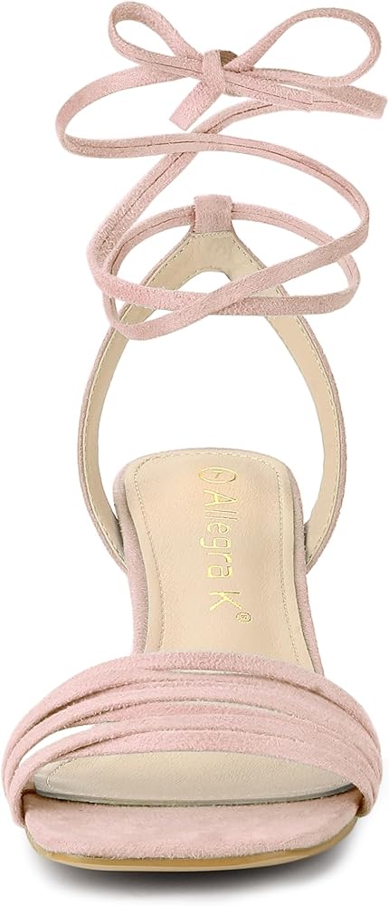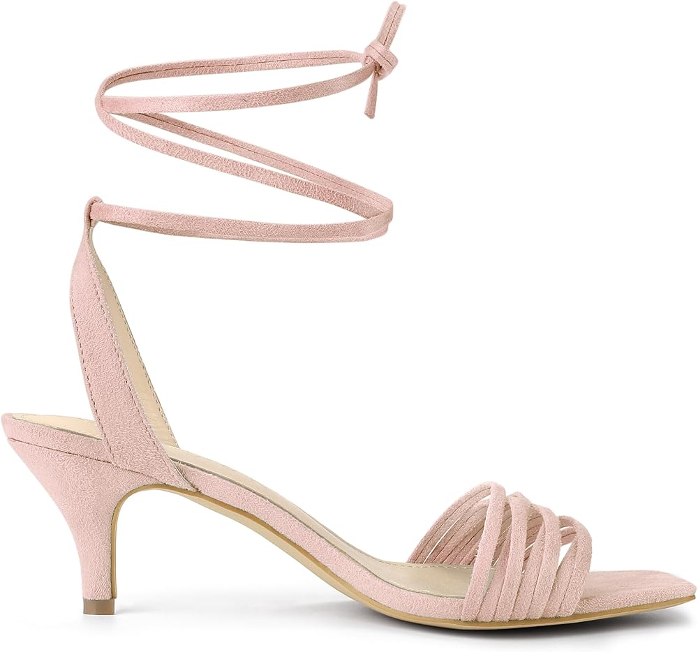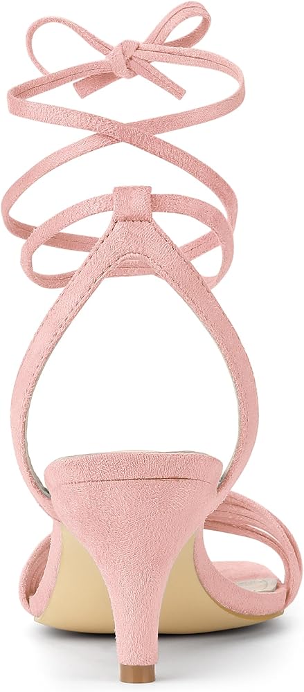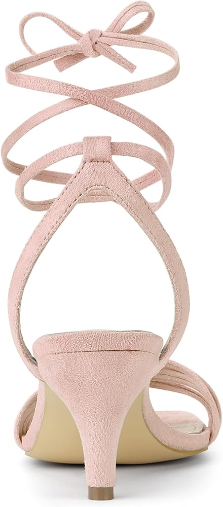 Allegra K Women's Kitten Heel Lace Up Suede Heel Sandals