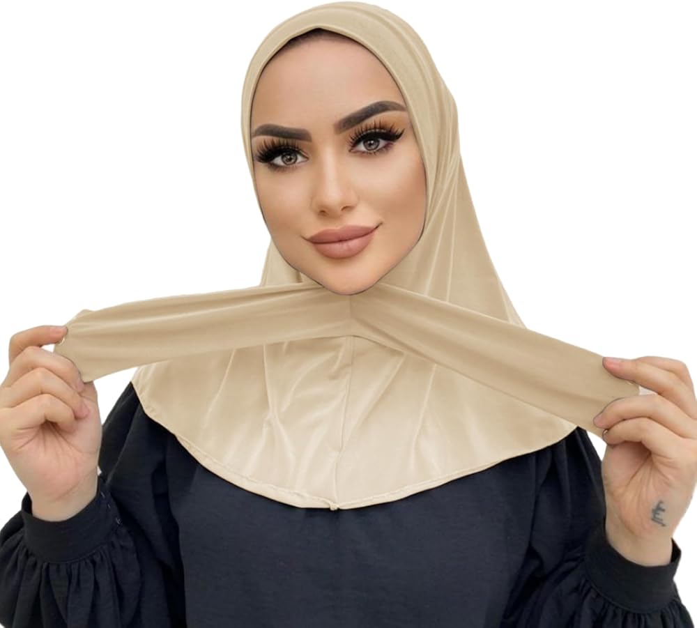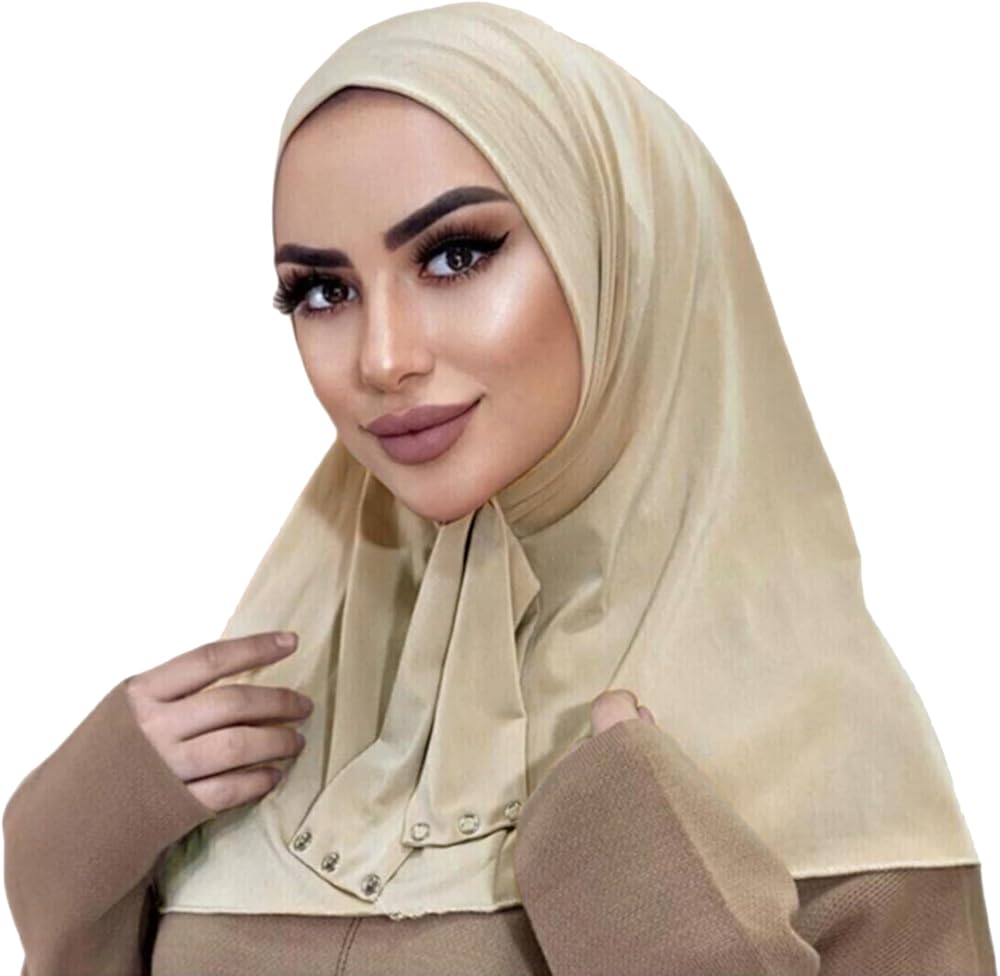Caviotess Instant Muslim Turban Hijab with Snaps for Women Cotton Headscarf Full Cover Bonnet Hat Islam Under Cap