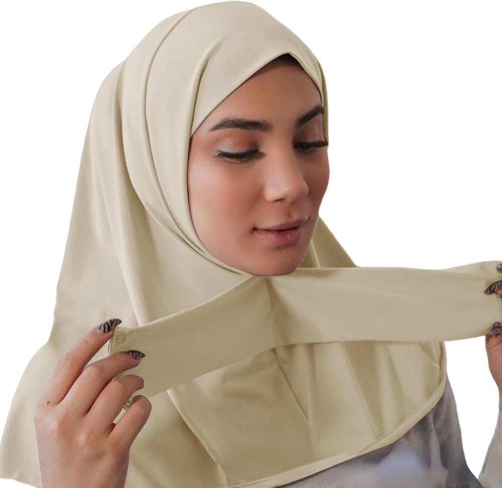 3) Designed with elastic straps and snap buttons, which prevents the hijab from moving around.