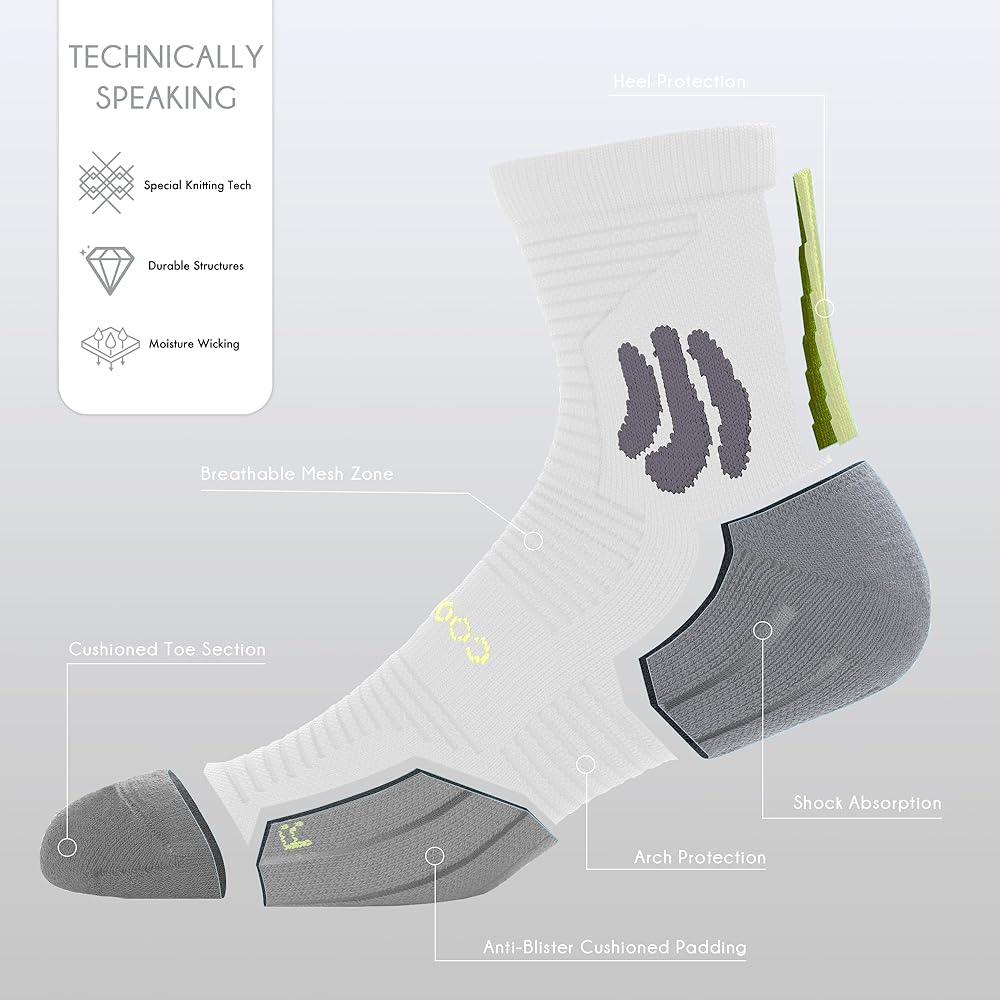 [Compression Design & Arch Support System]These athletic permformance socks are designed with compression. Just the right amount of compression and an arch support system ensures supportive stability for the arches during intense exercise, whilst maintaining ankle flexibility.