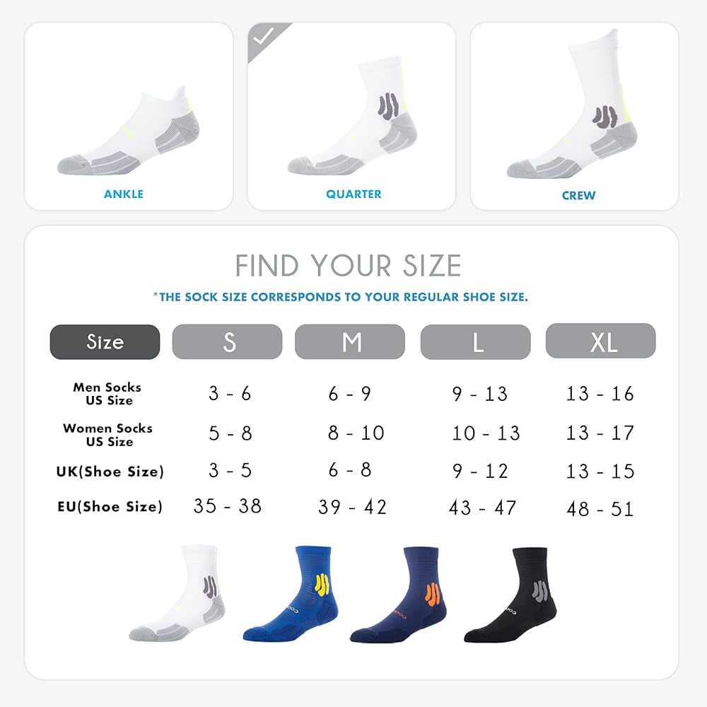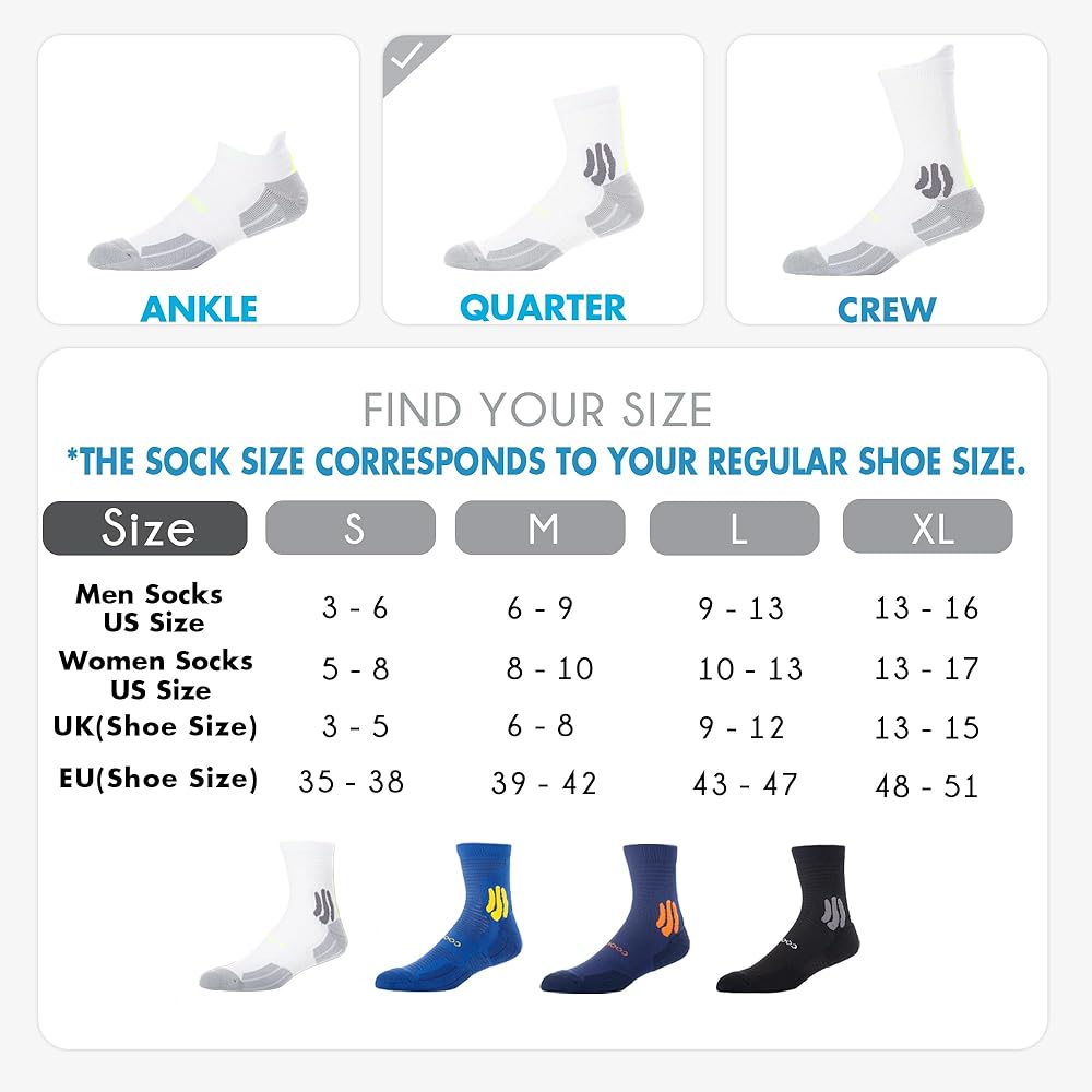 [Suitable for Sports, Travel and Daily Wear] These running socks are suitable for various scenarios, hiking, running, climbing, working out, yard work and anywhere in house or office. Available in black, white, blue and S/M/L/XL colors and sizes. A great companion for sports and a great gift for family and friends!