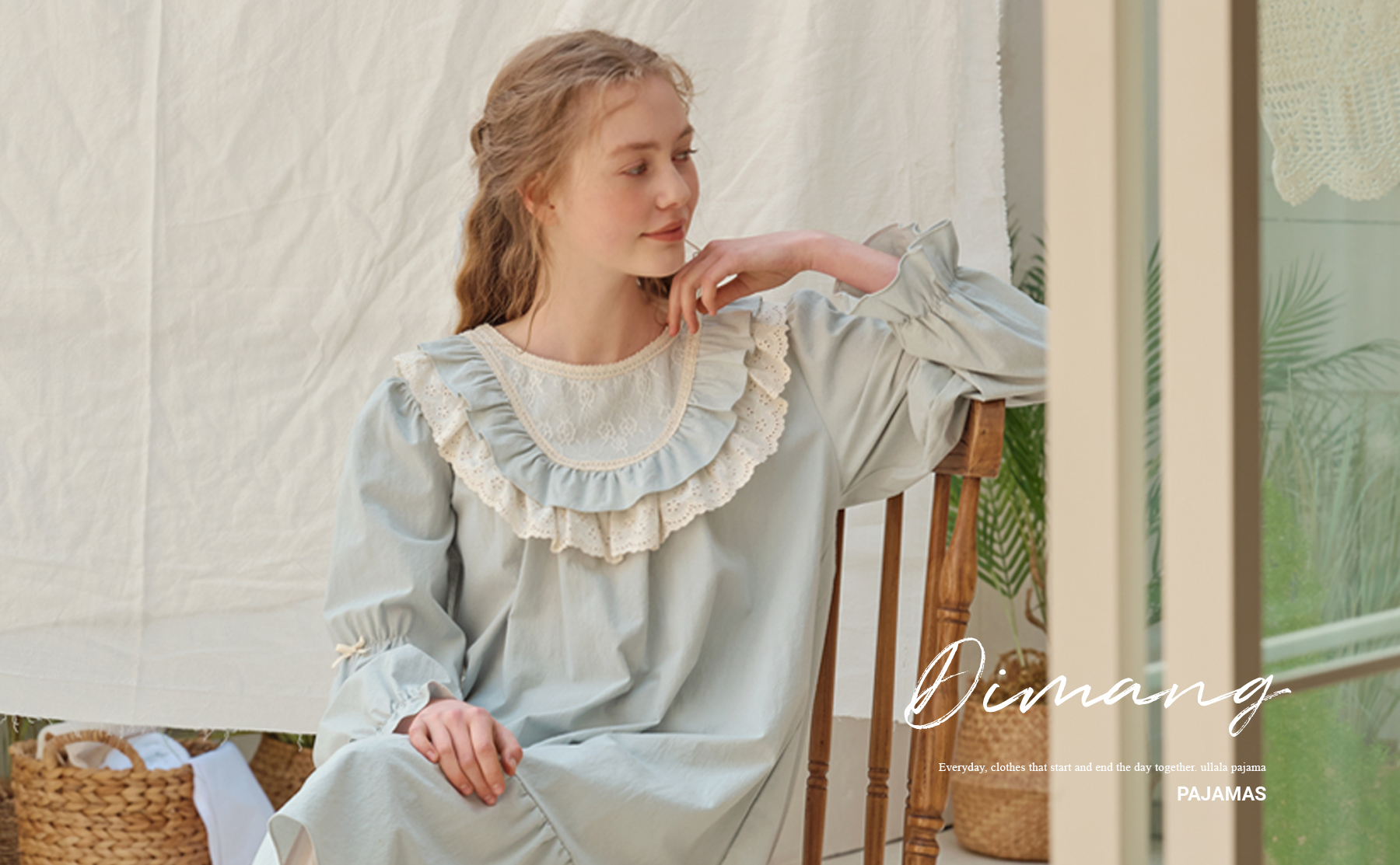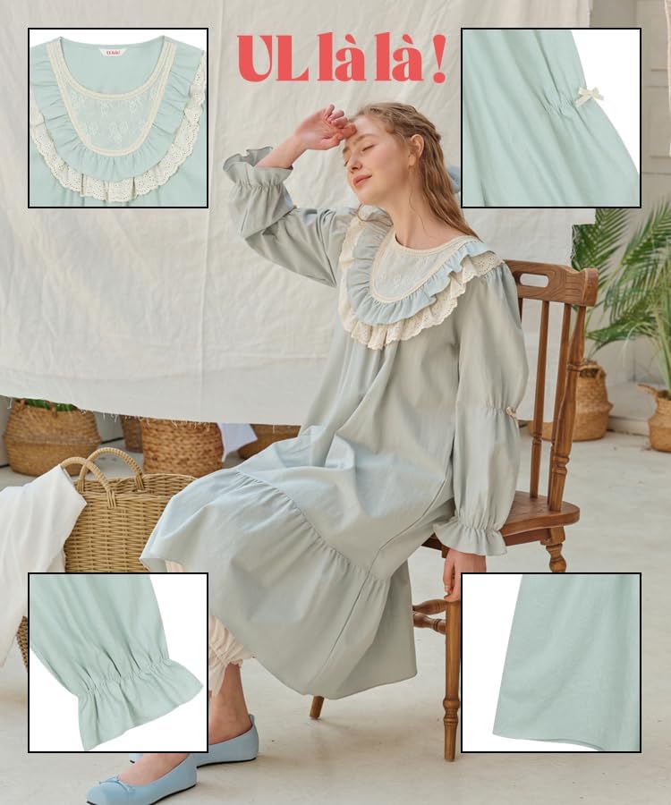 Design & Characteristics: This is a one-piece pajama with mesh embroidery fabric and lace that create a creamy look. Mangju-su and lace go wide into the neckline to give a warm feeling. The sleeves are equipped with small shirring and ribbon, so it is designed to show off Ulala's unique loveliness.