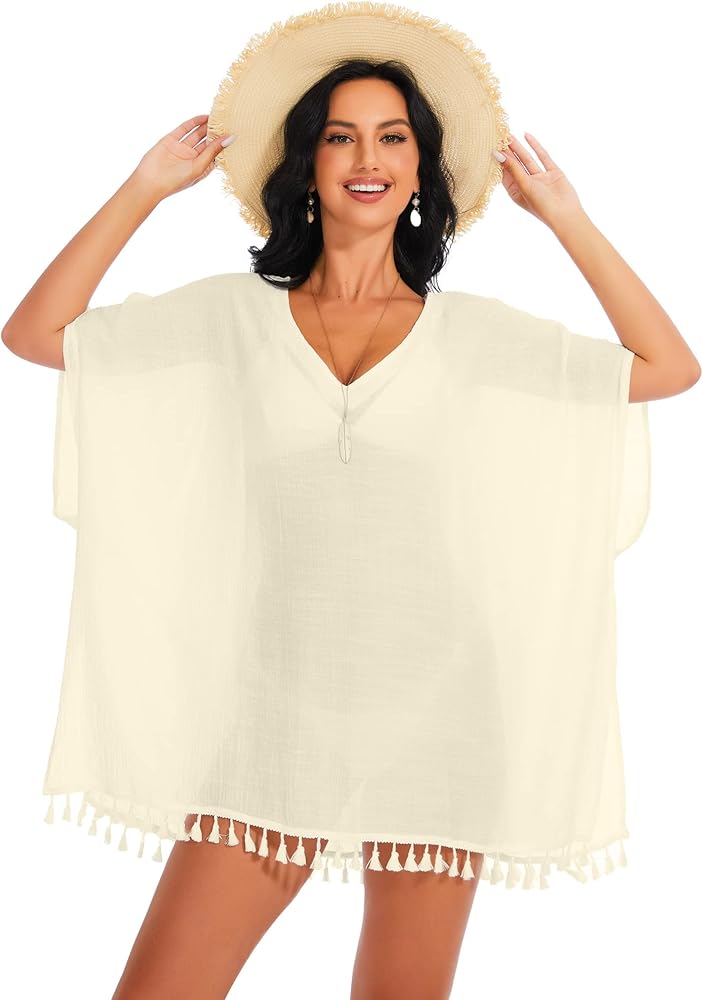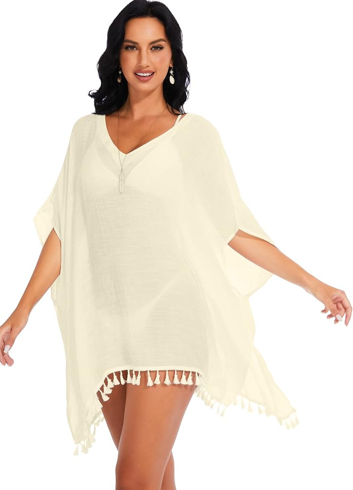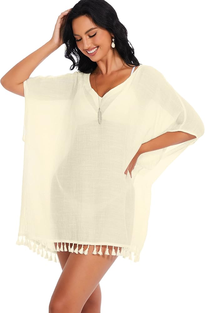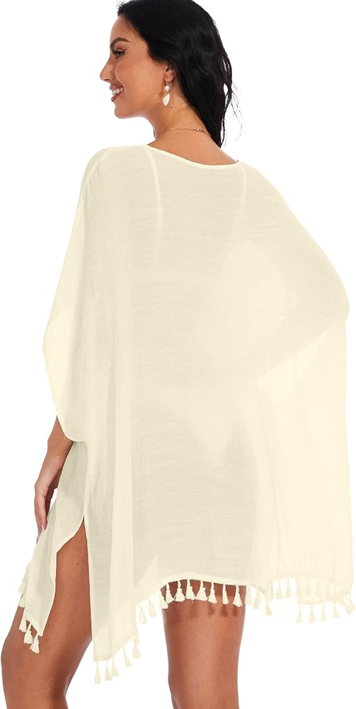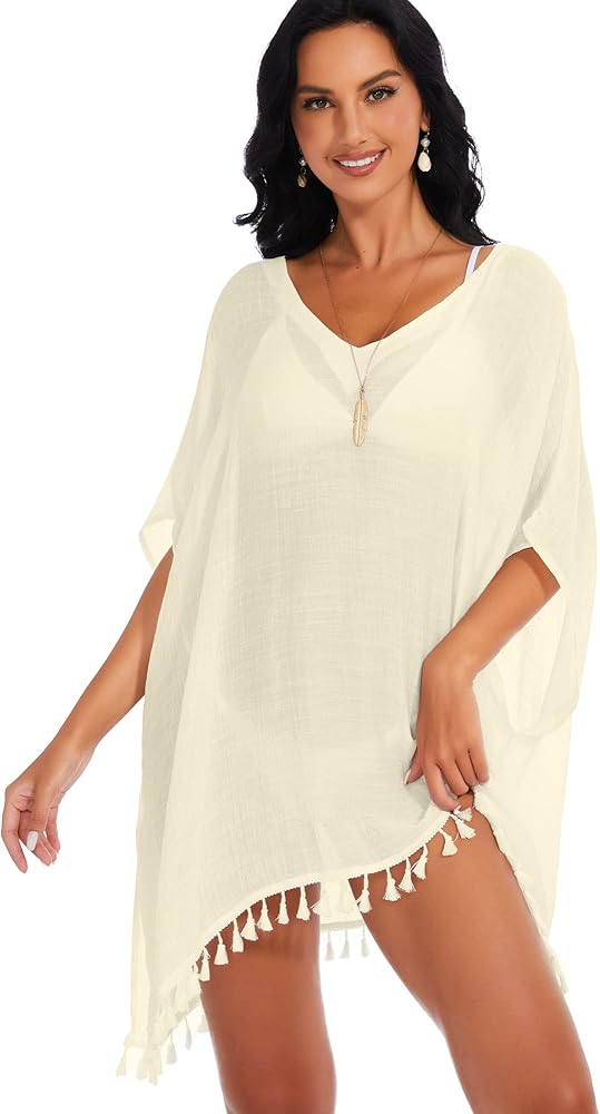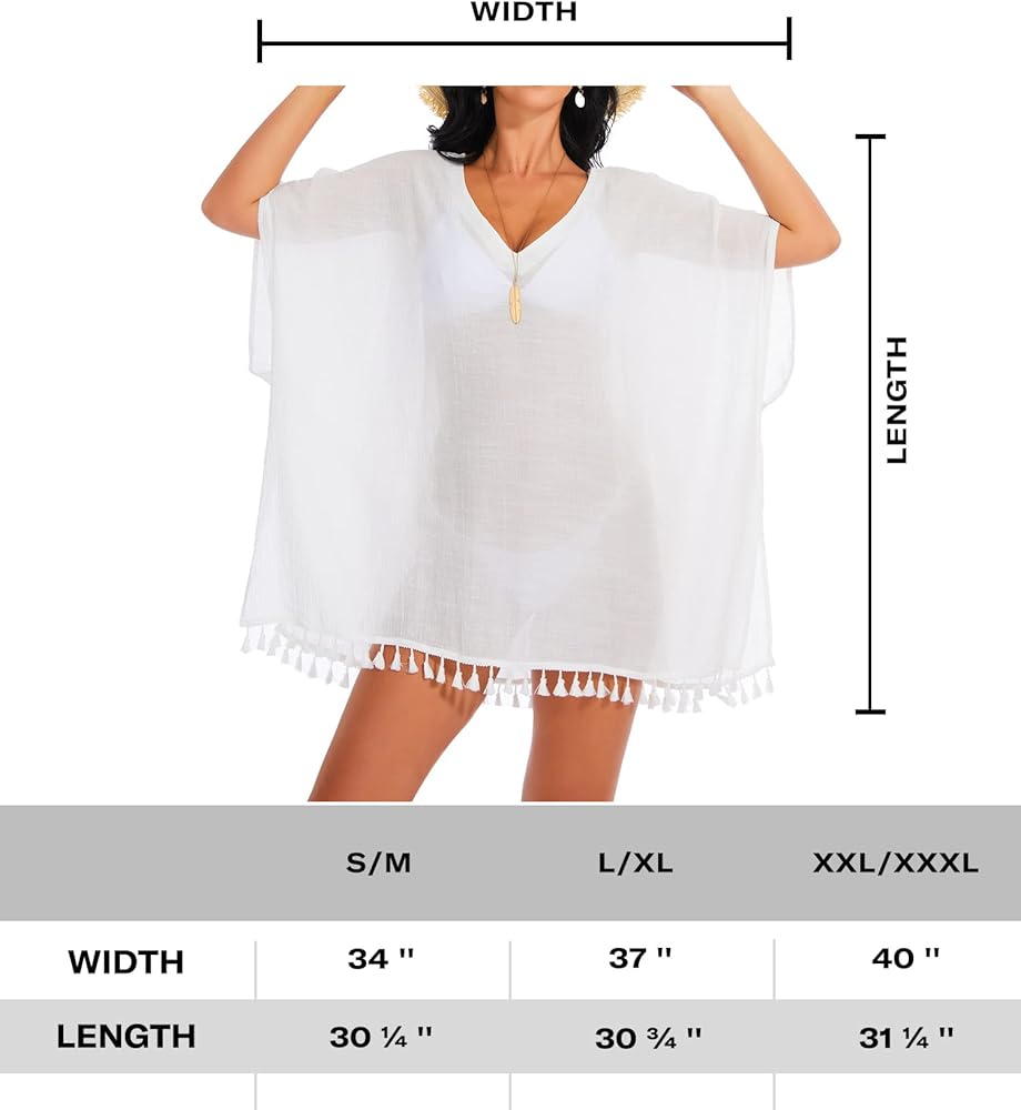 Design: Oversized dress design with kimono sleeve, loose fit, plus cute fringe, make this beach dress breezy and flowy, above-knee length cover up is perfect for your swimsuit
