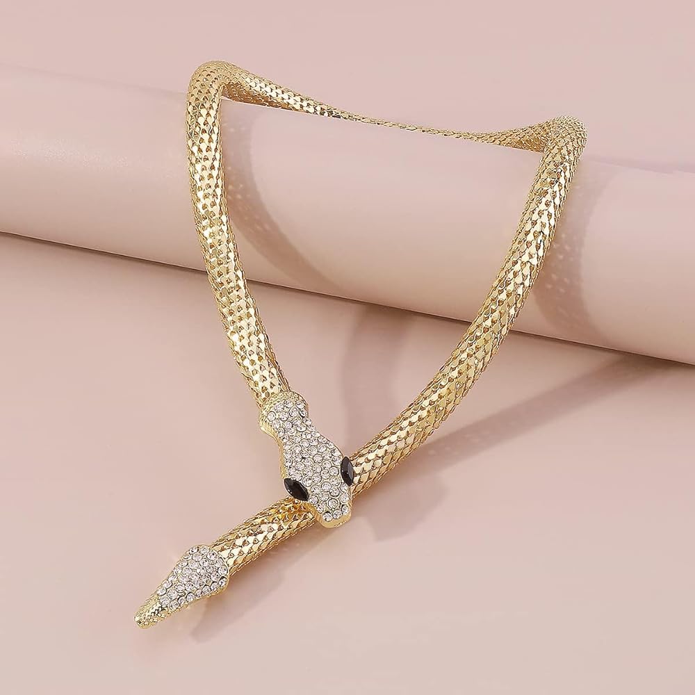 【Exaggerated and trendy】-This gold snake necklace for Women is a must-have accessory for those who want to make a bold fashion statement. The bendable and chunky design adds a unique touch to any outfit, making it perfect for anyone who wants to stand out from the crowd. Whether you're dressing up for a special occasion or simply want to add some flair to your everyday look, this statement gothic choker is the perfect choice.