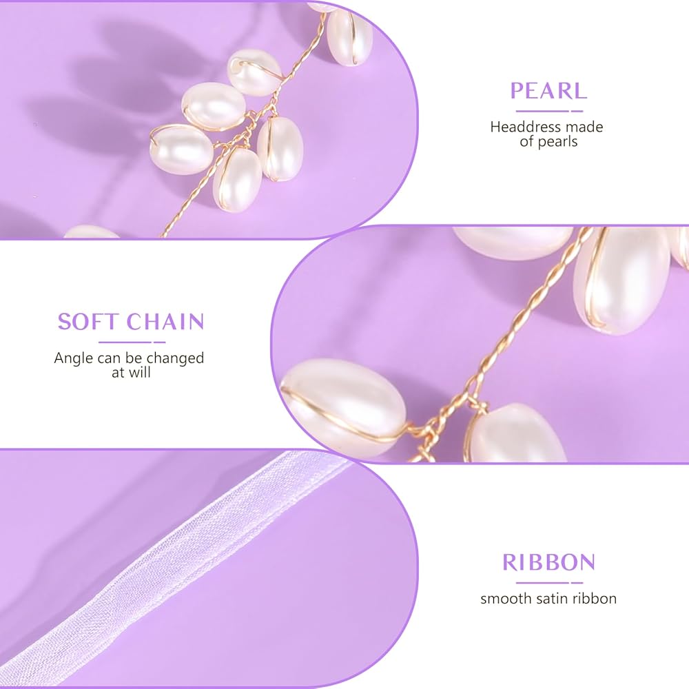 【Suitable Size】Our pearl headband hair accessories are divided into two parts, the main body and ribbons, so they can almost meet any head circumference requirement. Hair accessory body: 39cm/15.35in, Ribbon: 56cm/22.07in.
