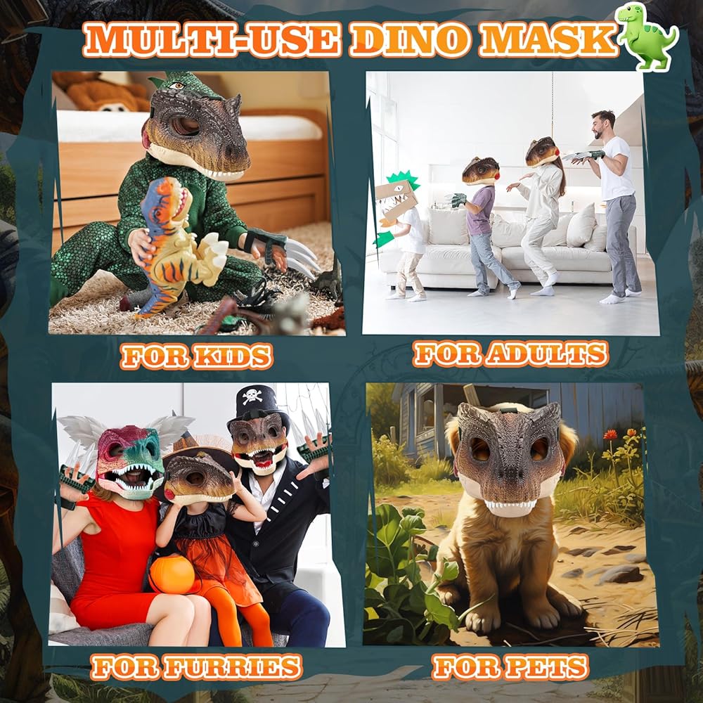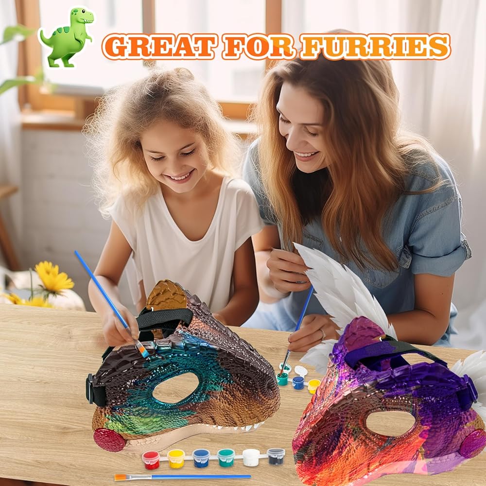 🦖🎨DIY Your Own Mask for Fun Roleplay - Do you want to fine a great furry toy set for DIY your own furry mask? If your girl/boy is a furry, our dino toy set is really suitable for her/him! The attached paint can mix all color you like, and ensure to create 3/4 times. Now, let your little kids can strap on the mask and put on the claws, open the jaw and ROAR, just come play and create their own Jurass-ic Wor.ld adventures! It an ideal choice for Halloween party, furry party, dinosaur party.