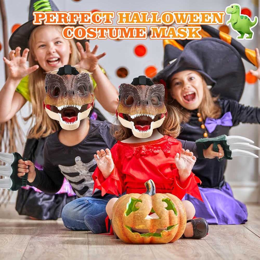 🦖👌High-Quality and Comfortable - Our dinosaur mask is made from hard-plastic ABS materials not latex or rubber, is durable and non-toxic. The mask are soft with smooth edges, very safe for your kids, and the paints have been rigorously tested. The goggle in the eye is made of durable TPE materials for comfort and high elasticity, it can be used with glasses. Please buy with confidence.