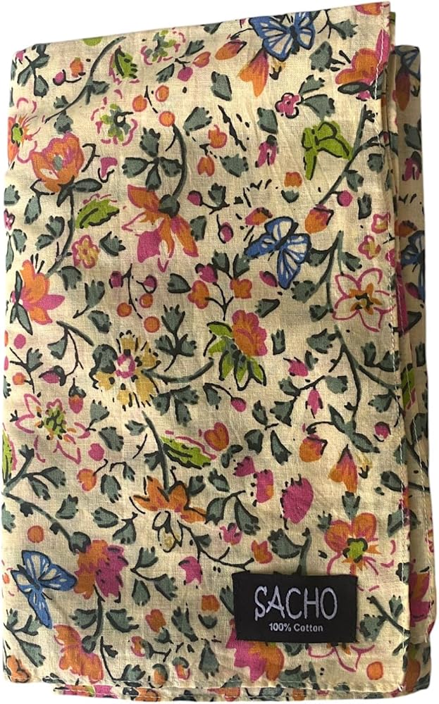 Reach for it Again and Again - A Sacho Cotton Scarf has many uses. Ideal as a head covering, and thin and soft enough to tuck away in your car or bag for many more uses. Use as a summer scarf for women lightweight and breathable, wrap it around yourself for extra coverage on a breezy summer night, or hang it up for beautiful decor. Our customers love to fold this large square scarf into a bandana for a religious head covering for women, a tichel, a summer shawl, or as breathable chemo headwear.