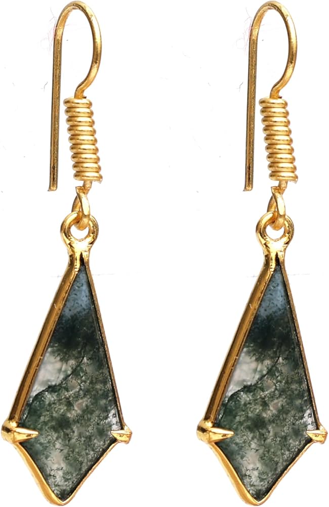 Gempires Handmade Gemstone Dangle Earrings Elegant Lightweight Kite Jewelry Hypoallergenic Gold Plated Everyday Wear Crystal Dangling Women Earrings
