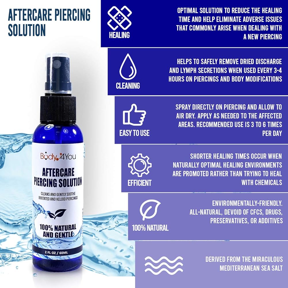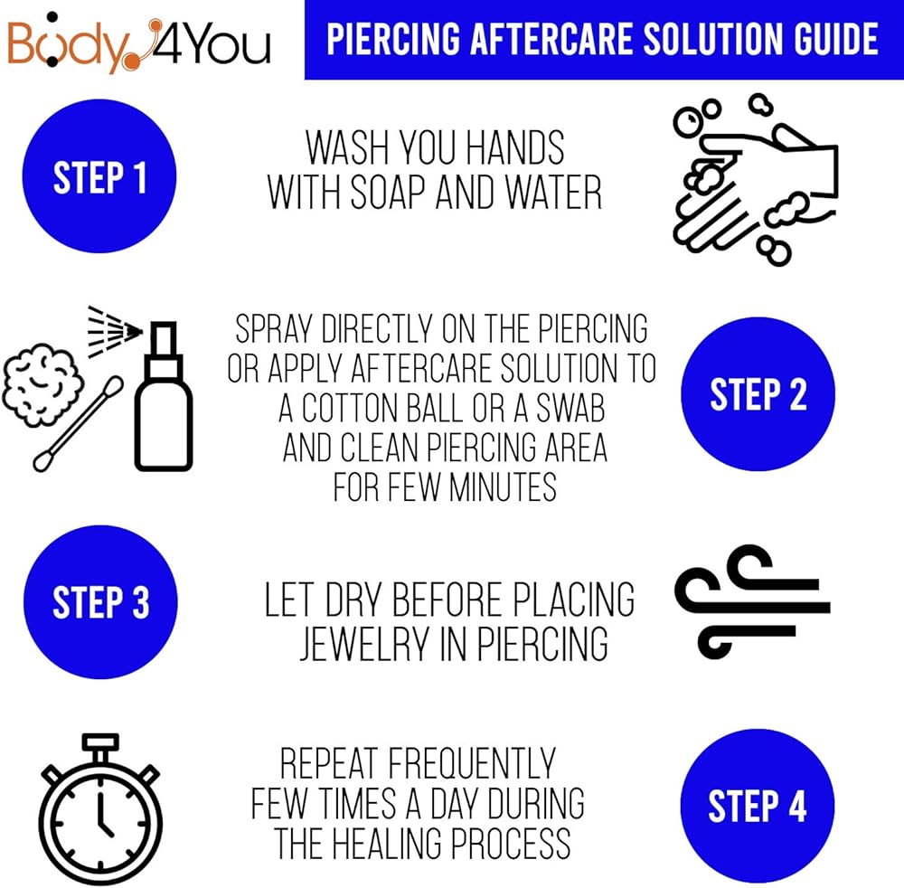 HOW TO USE: Spray Directly on Piercing or Sterile Disposable Cotton Tip, Apply as Needed to Affected Areas and Allow Air Dry. Recommended to Use 3 to 6 Times a Day. Spray Helps to Speed Up Recovery, but Remember to Be Patient with Your Body as It Recovers.