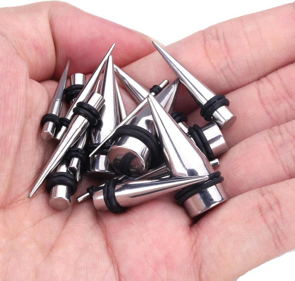 GAUGES KIT: Plugs and Tapers (1 Pair of Each Size): SIZES: 14G (1.6mm), 12G (2mm), 10G (2.4mm), 8G (3.2mm), 6G (4mm), 4G (5mm), 2G (6mm), 0G (8mm), 00G (10mm). SINGLE FLARE: Plug Has Lip on One Side and Perfectly Smooth on Other, O-Rings will Securely Hold Jewelry in Your Ear.