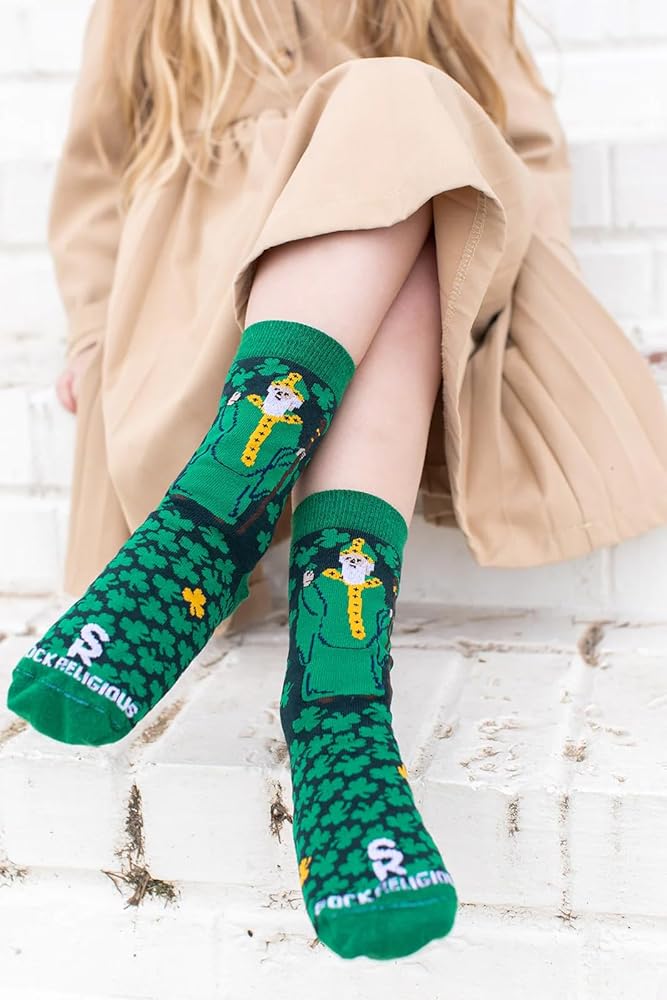 St. Patrick socks are covered in green shamrocks and put you in the clear from all pinching; Remind yourself and your friends that the day isn't just about leprechauns and green beer, but also about a great Bishop and Saint who had a profound conversion and preached the Gospel throughout Ireland for the last 40 years of his life