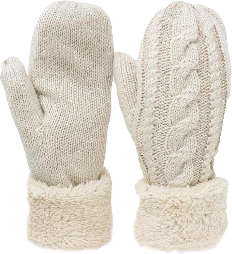 Super fashionable and trendy winter gloves mittens for women. Made out of soft Acrylic will not scratch your hand like classic wool. You can feel the difference in touch. Lined with extremely soft plush fleece will keep your hands warm during winter days. Those knitted gloves can be worn cuffed o under the jacket uncuffed to extend the glove protection. These mittens are super soft and warm with a plush cuff. Our crochet knit mittens are great for all outdoor activities durring winter season. The womens winter glove mittens feature a crochet knit with the twisted design on the outside and have a warm fleece interior lining.