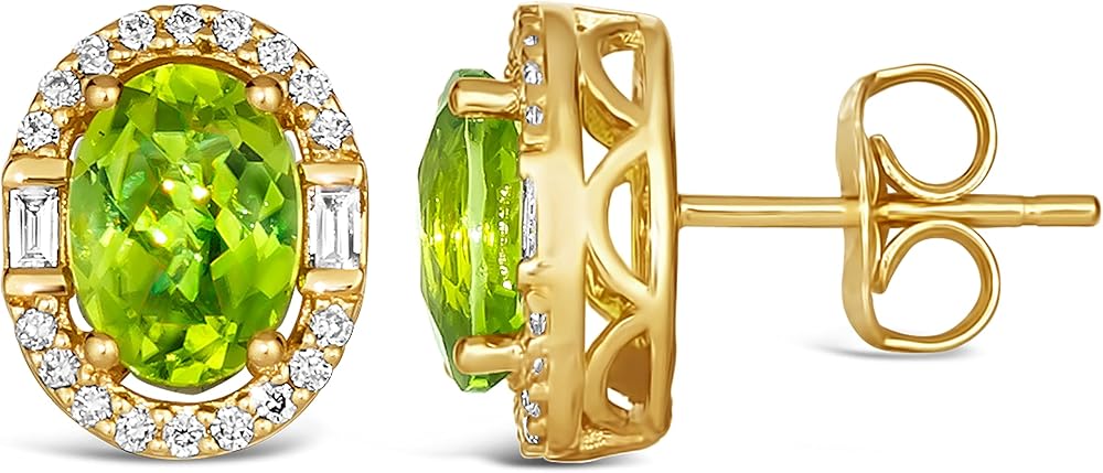 LE VIAN 1/5 Carat Diamond and 1 2/3 Carat Green Peridot Oval Halo Stud Earrings for Women In 14K Yellow Gold (G-H, SI1-SI2 / VS2-SI1, Cttw) Push Back Studs By Levian