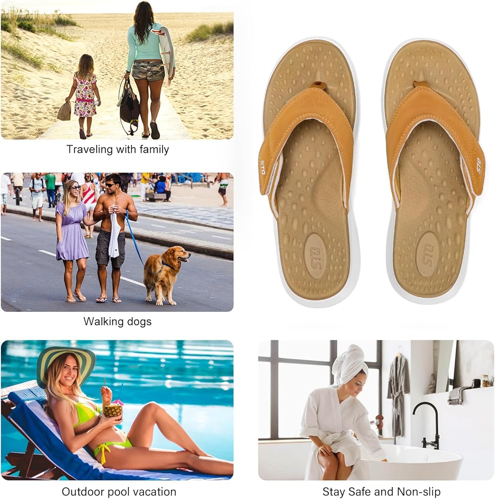 Orthopedic with Arch Support: Our flip flops offers orthotic footbeds and proper arch support, providing enhanced stability for walking. Ideal for plantar fasciitis, flat feet, diabetes, and Morton's neuroma. Say hello to all-day comfort