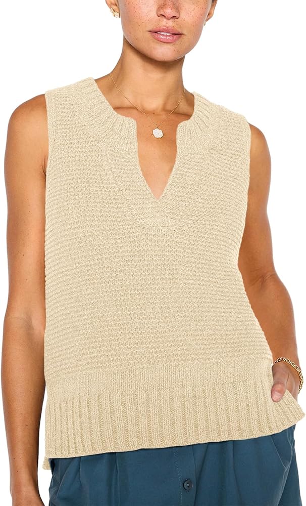 Style: women's sleeveless knitted sweater vest, crew v neck lightweight tank top, side slit casual tunic tops, soft hand feel, chic stylish look