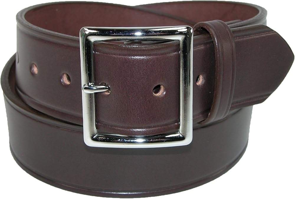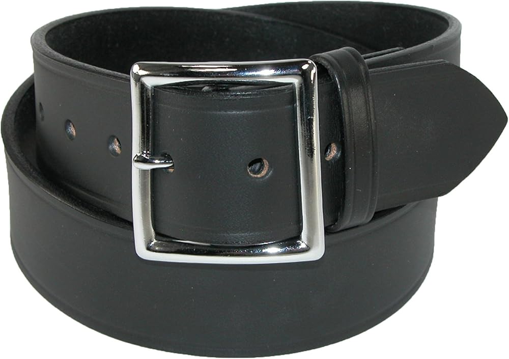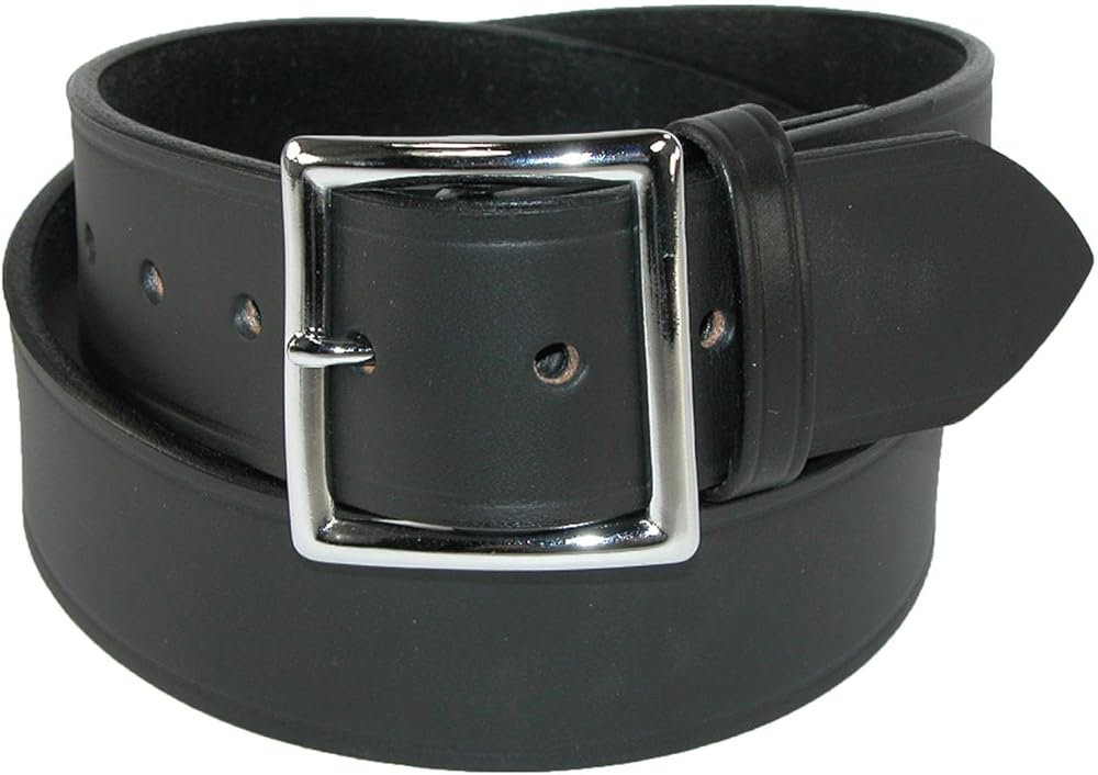 Garrison belts are a classic style used for jean and casual wear, it is also a popular choice for Police officers, uniformed professionals, and security personal. A thick 1 5/8 inch wide leather strap is durable and strong. The silver finish center bar buckle is removable, so you can replace it with your favorite buckle. The edges are heat creased for a tailored look. When choosing a size, please take your pant size and go up one. For example, if you wear a size 34 in pants, buy a size 36 belt.