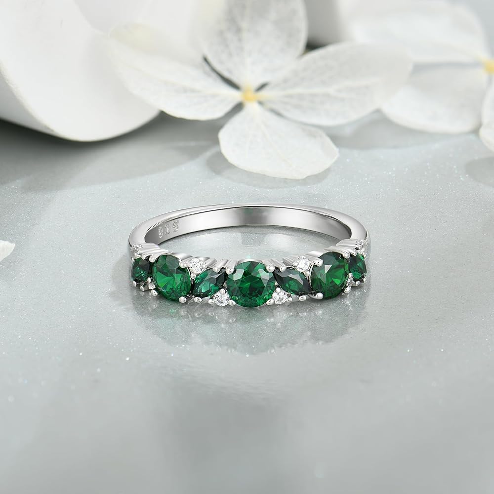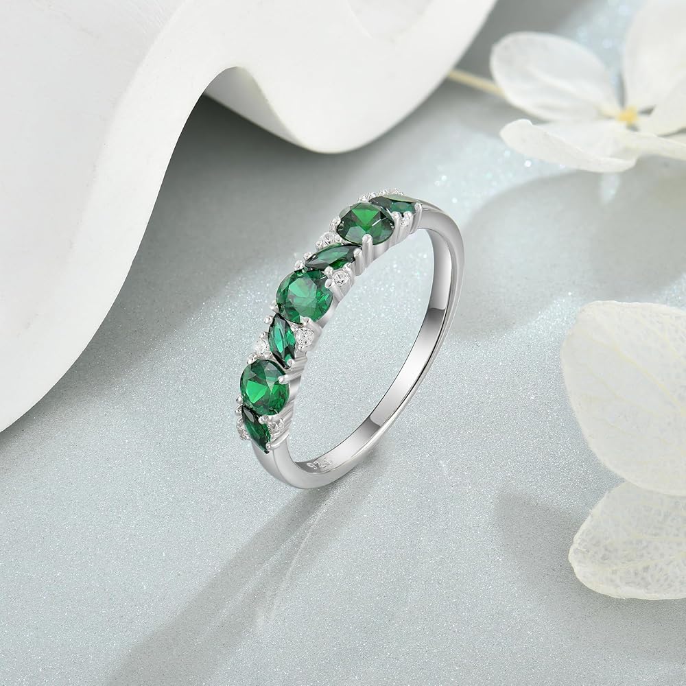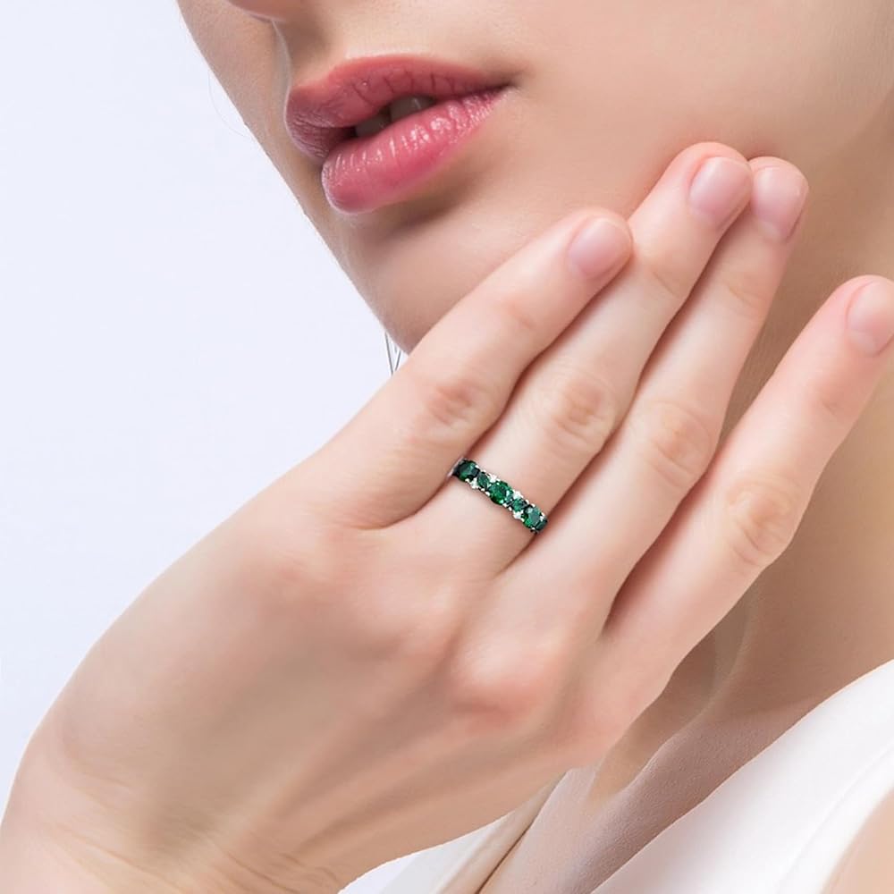 Ring Size - Stackble eternity rings width is 0.15" (3.8mm) and weight is 2.8 grams, set with 4 pieces 4*2mm marquise cut 3A created amethyst and 11 pieces round brilliant-cut 3A cubic zirconia.