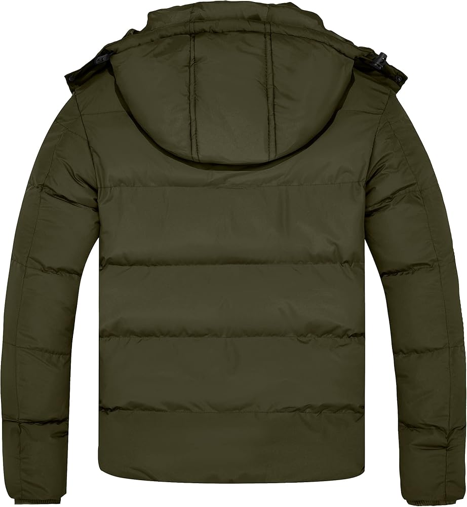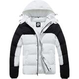 Windproof Snow Coat: (1) Ribbed cuffs and and adjustabnle hem to seal in warmth. (2) Removable hood to make the best heat retention in cold days. (3) A full front zipper with button planket helps lock temperature.