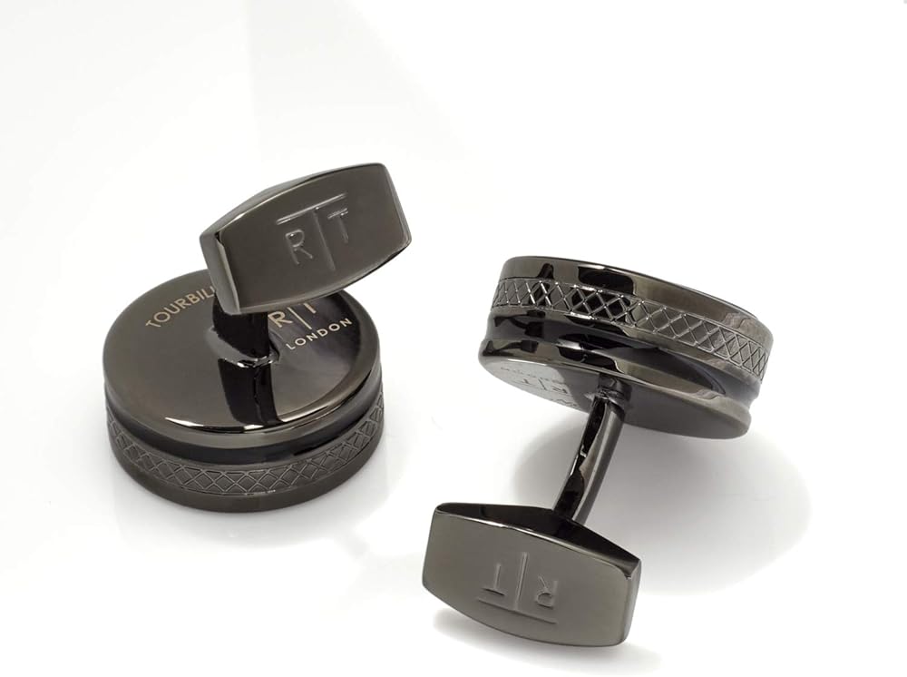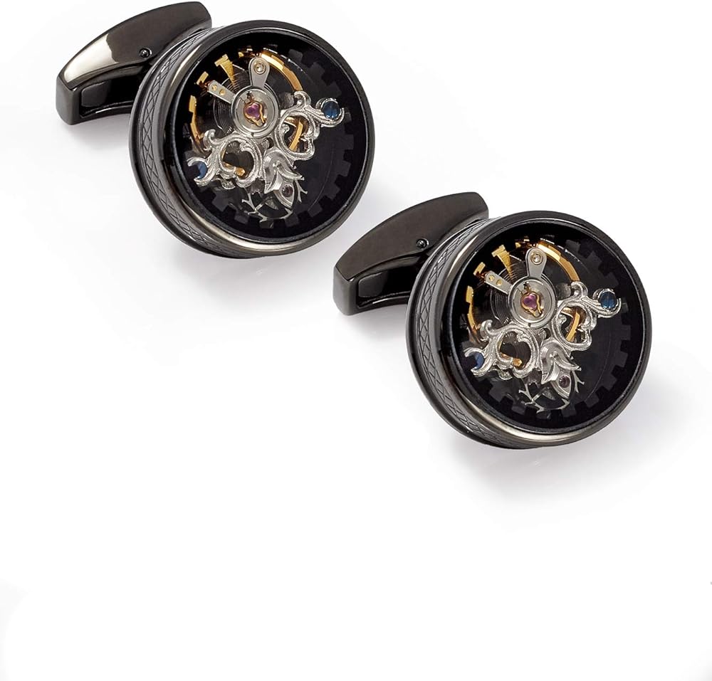 Tateossian Single Tourbillon Gear Cufflinks in Gunmetal and Black Enamel