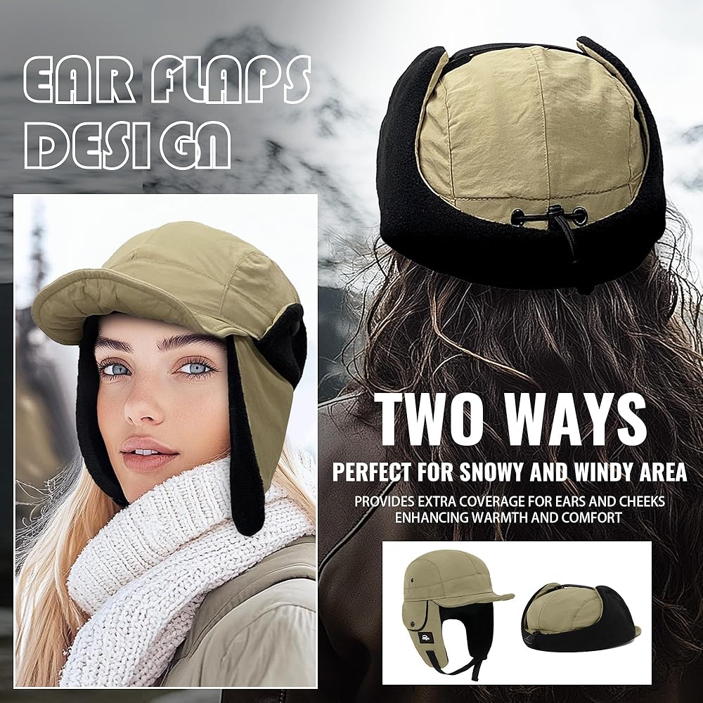Design: The Ear Flaps can be placed in two different positions, one is tied to the chin, which can help the hat stay stable in windy weather and enhance the warmth; the other is tied to the top of the head if it gets too hot, just like the Russian Ushanka hat moved to the top.