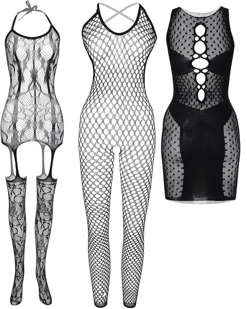👯♀️Quality Material: The material of women fishnet bodysuits is nylon, these women's mesh skirts are elastic, soft and comfortable, durable and can be used for a long time, and stockings and underwear will be more beautiful at night. You will get 3 pieces women sexy fishnet lingerie.