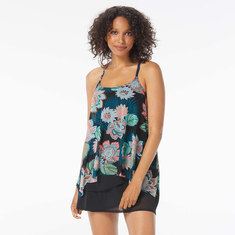 SLIMMING LOOK — The Coco Reef Current swimsuit tankini top features a delicate and floaty mesh layer that hangs softly for a tummy control slimming effect minimizing the tummy area and elongating your body giving you a smooth tankini silhouette.