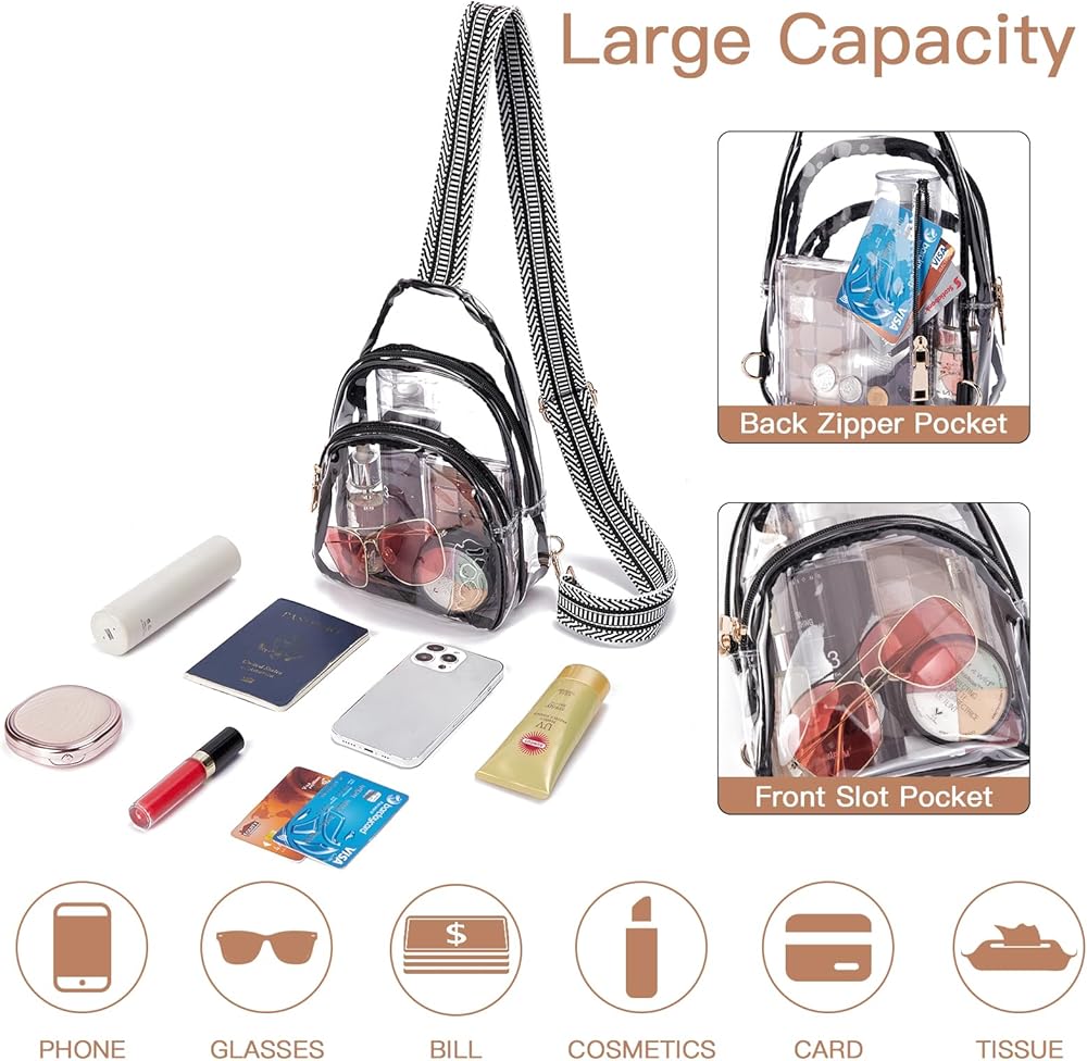 Keep Your Hands Free - Clear sling bag for women crossbody is lightweight and comfortable to wear. Whether you're running, commuting, concert or walking the dog, this clear bag keeps your hands free so you can enjoy more.