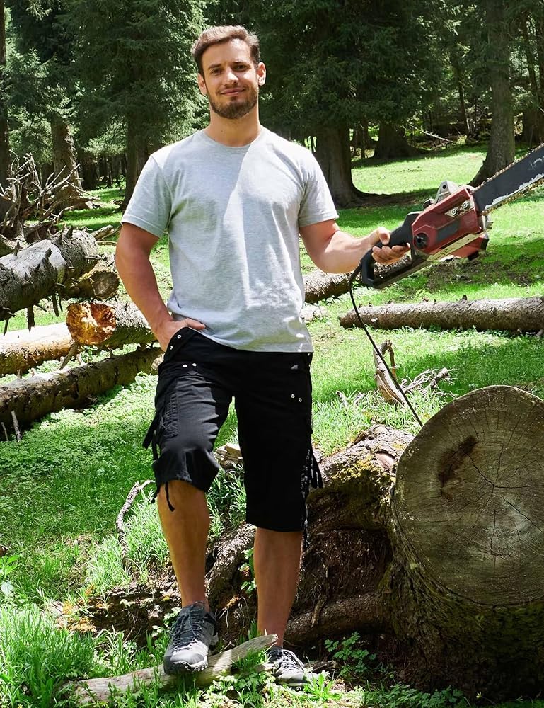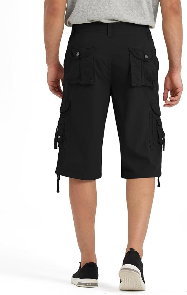 Below knee: These capri-style cargo shorts are tailored to sit just below the knees, offering an alternative length that adds versatility to your wardrobe choices.