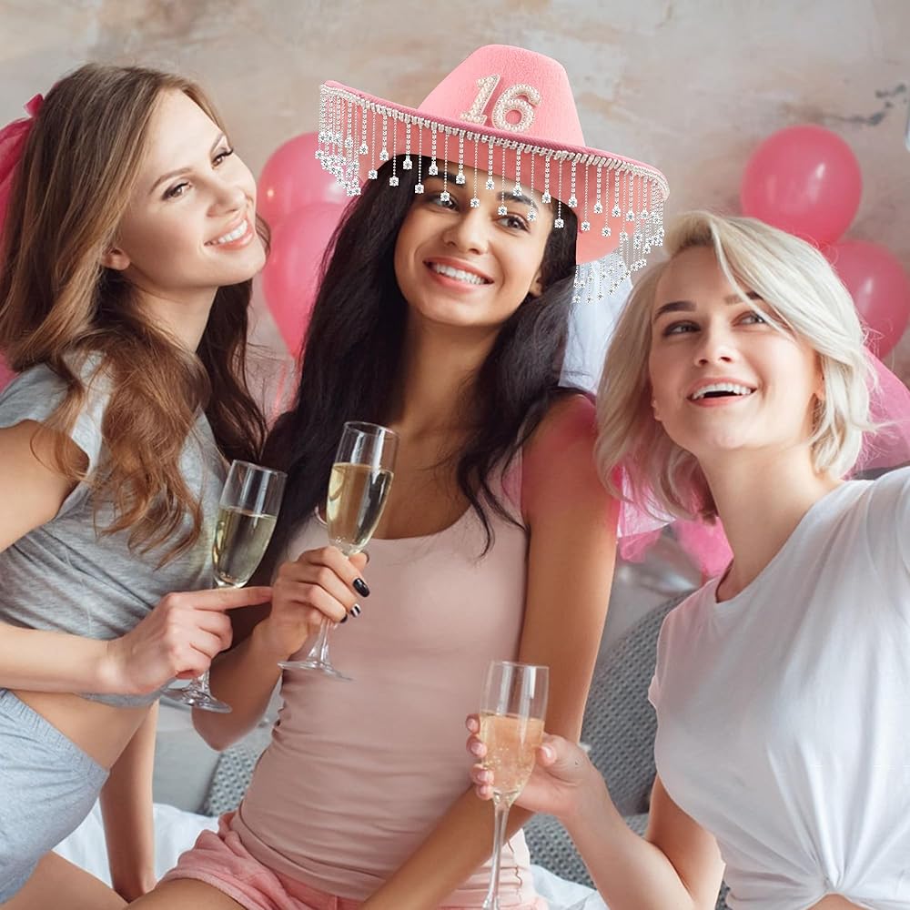 🎁👑【Awesome gift choice 】: The pink 16th birthday cowgirl hat is a perfect gift, making them the party queen at their birthday bash! This gift will add unforgettable memories and birthday experiences to their special day!