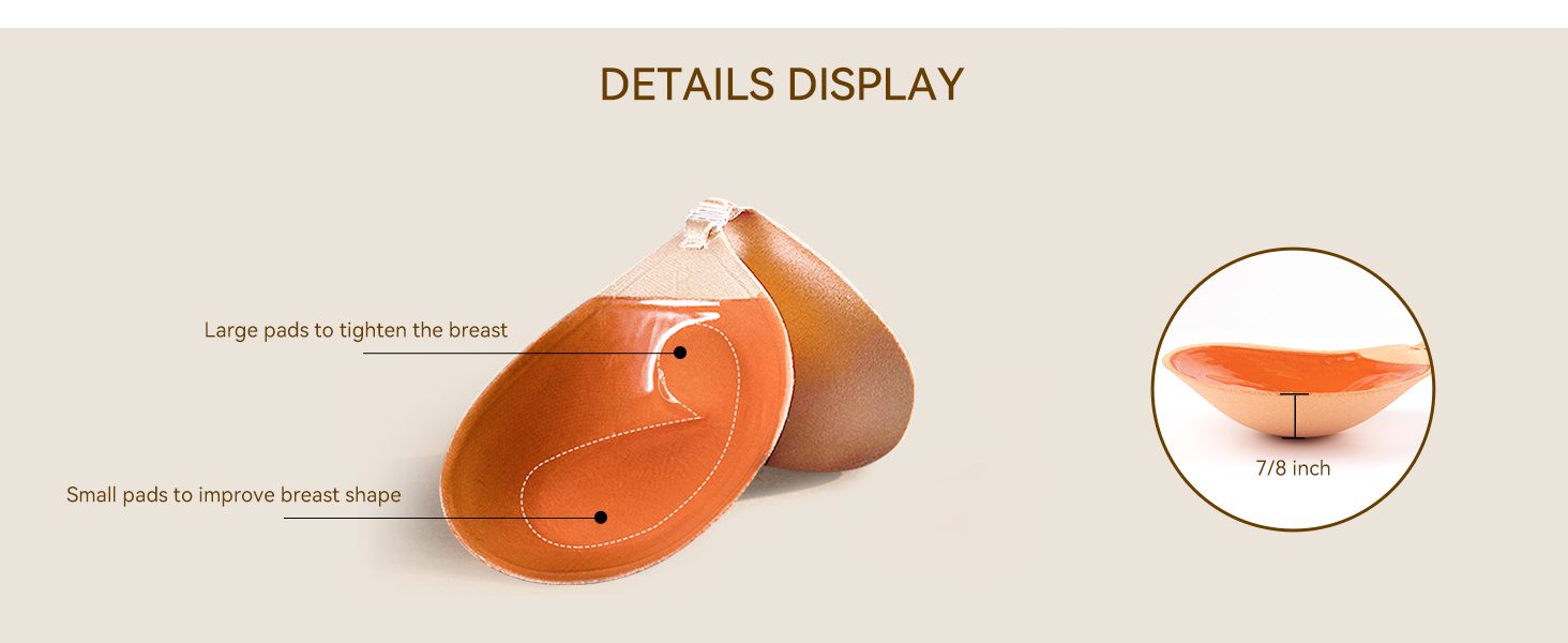 Light Spandex Fabric: This self-adhesive bra is made of healthy medical-grade biological gel and soft spandex fabric material. The Bio gel is extracted from plants, non-toxic and harmless. Compared with the traditional complete silicone bra, spandex material make the sticky bra more light and breathable, bring you a more cooling and skin-friendly wearing experience.