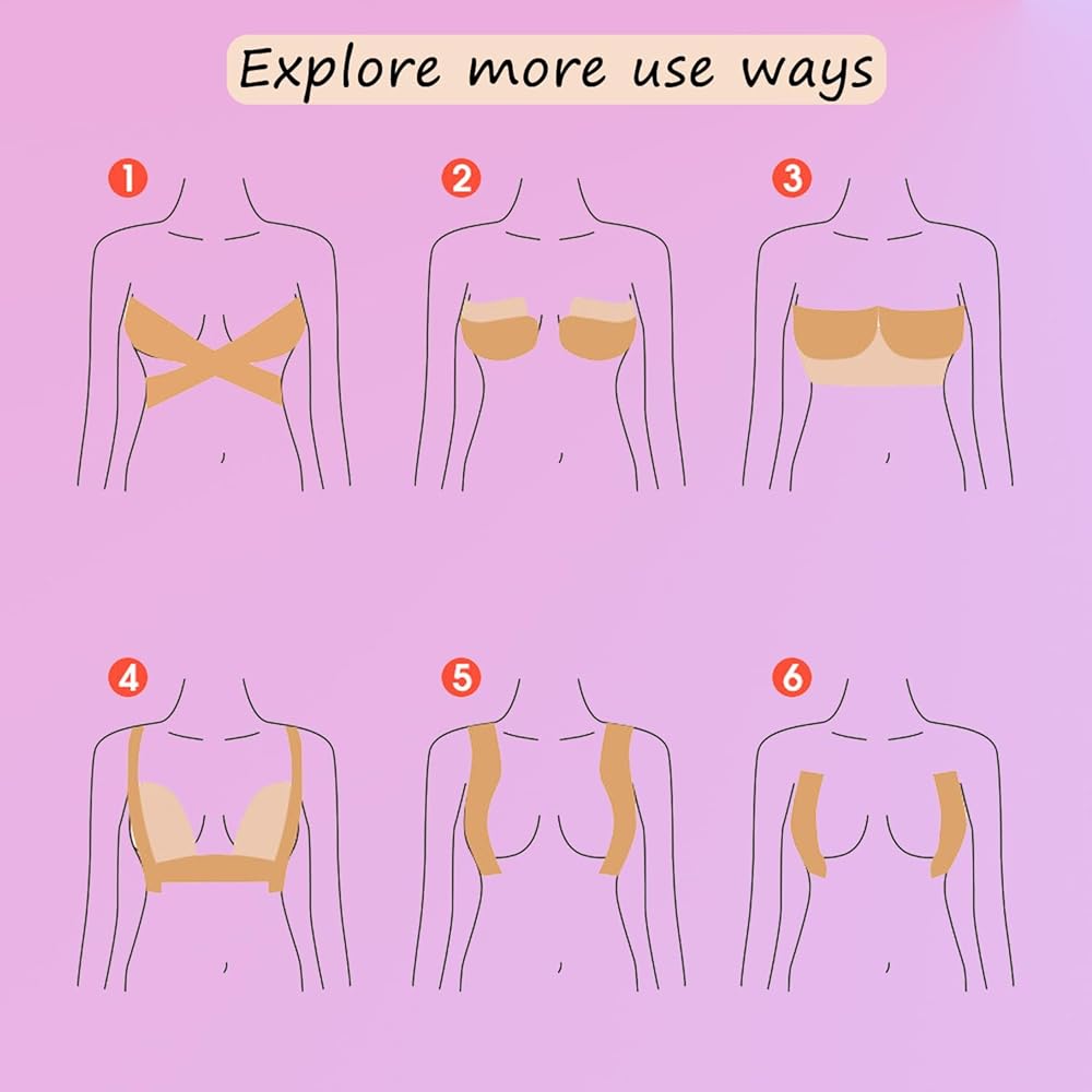 HOLD CUP IN STAY : stick-on bra tape is strong enough to hold your bust in place all day long, so you don't have to worry about sagging or slipping. The Invisible boobtape for breast lift fits for A-G cup.