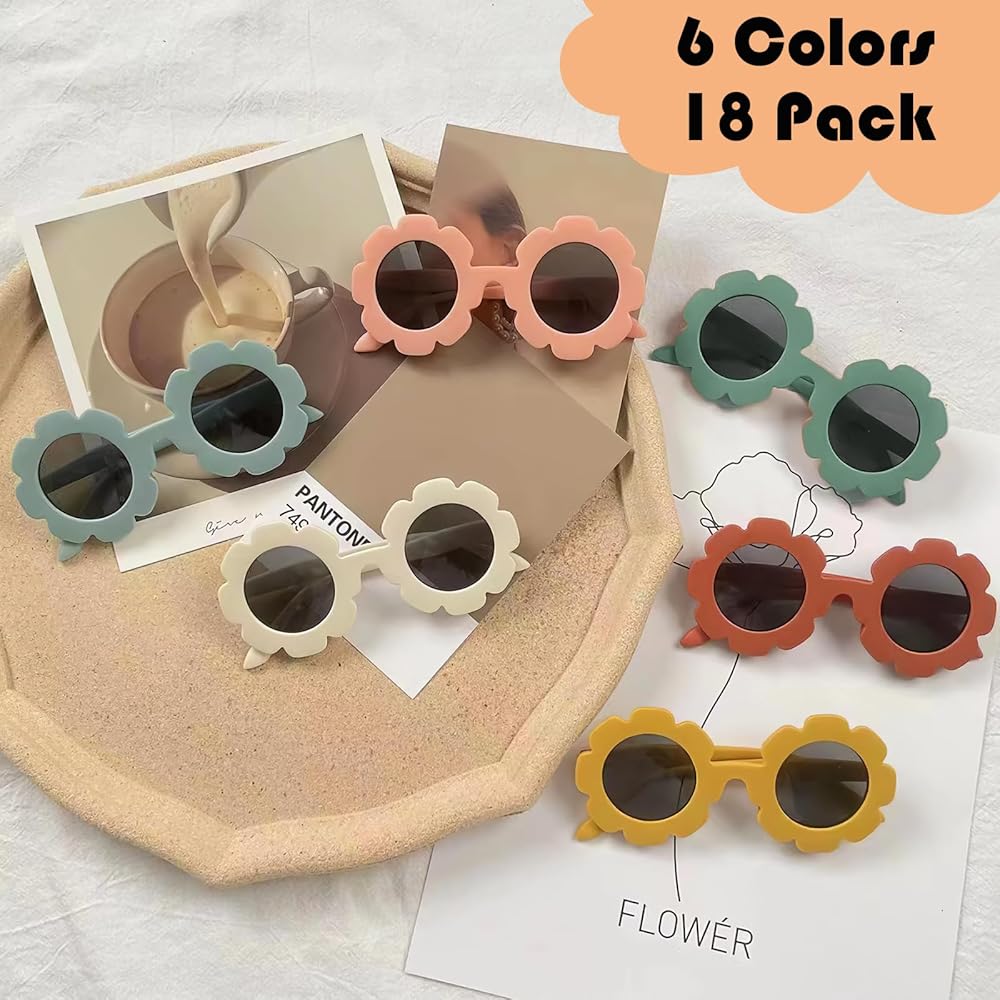 Nice Kid Sunglasses Set - you will receive 18 pieces of sunglasses in 6 different colors, sufficient amount and color for your kid's daily wear. Wearing these flower glasses make your child cute and eye-catching in the crowd.