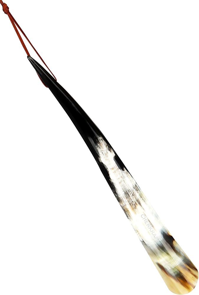 CHERKRAFT Shoe Horn with Handle Natural Handcrafted & Polished Made from Real Horn For All Shoes & Boots - 15 Inches