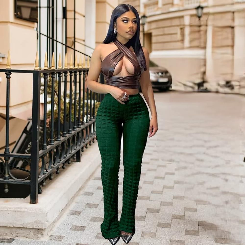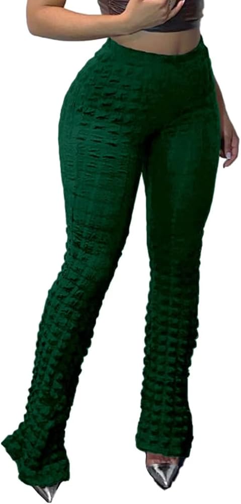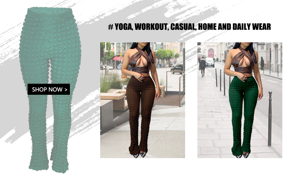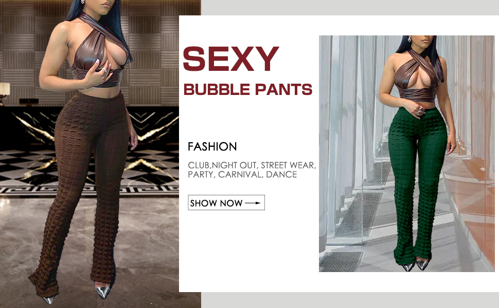 Features: Bodycon flare pants for women, with stylish bubble design, high waist, Bootcut bell bottom flare pants. Bubble checkered pants make you more fashionable when walking on the street. High stretchy flare trousers for women, floor Length, solid color, 70's fashion style pants makes you more charming.