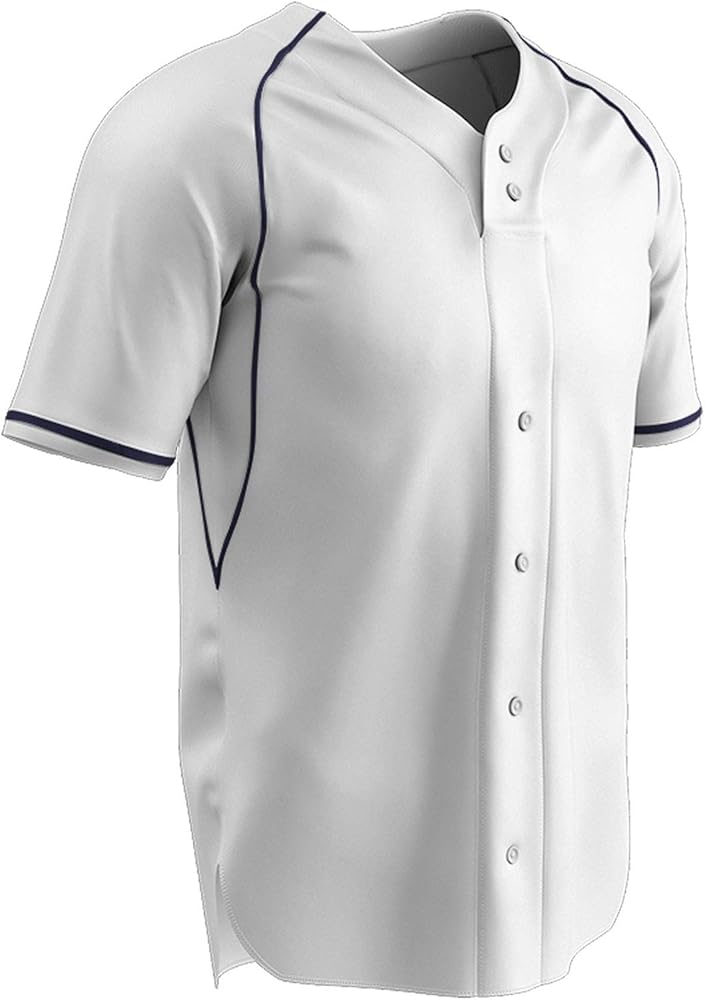 POWER, DRI-GEAR®, 100% polyester, flat back mesh, is a mid-weight jersey fabric with a smooth side and a slightly textured sideSolid color faux front jersey - two functioning buttons with a fill front button lookHemmed sleeves with double stitched seamsSplit tail jersey bottomFull cut jersey look