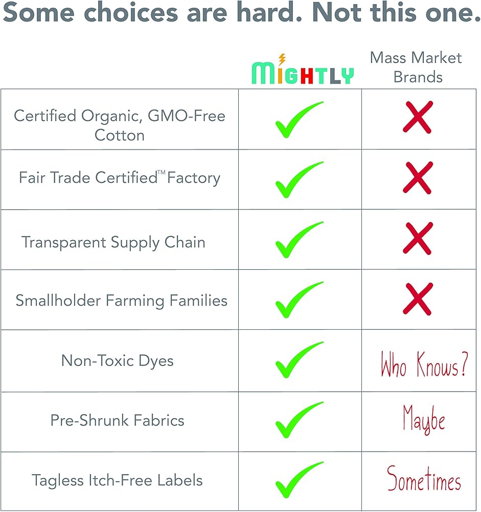 100% ORGANIC COTTON - Mightly children's clothes are certified to the Global Organic Textile Standard (GOTS). They are imported from India and made with certified organic cotton and non-toxic dyes and inks. Our dye process results in long-lasting color that won't irritate sensitive skin. Mightly's GOTS ID# is OT-034929.