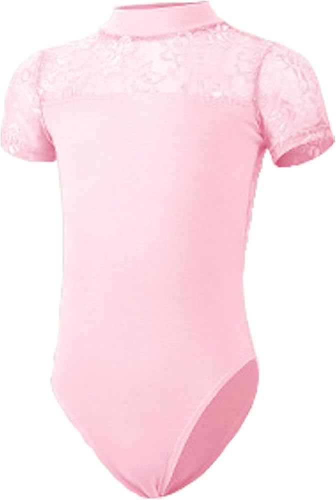 Girls' Lace Ballet Leotard Short Sleeve Dance Gymnastics Bodysuit Tights Dancewear Costume One Piece Outfit