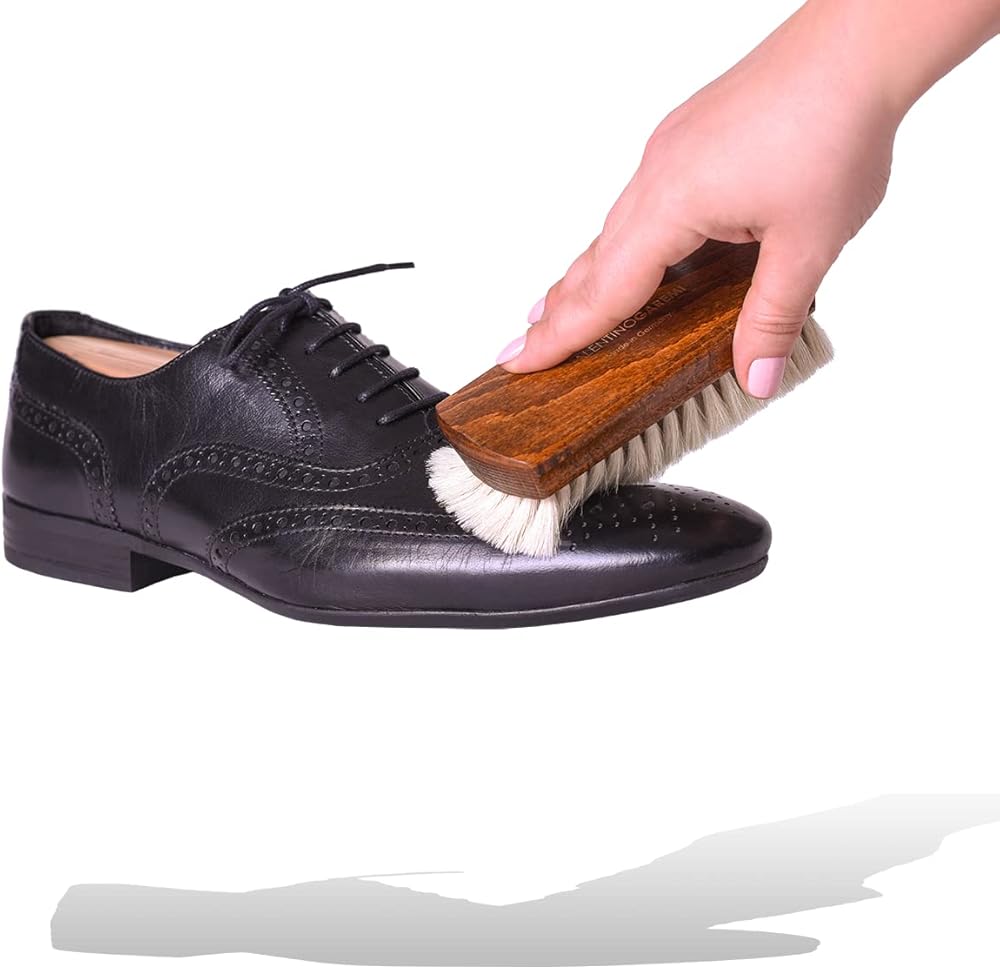 ⚜️HIGH QUALITY SHINING BRUSH FOR LEATHER SHOES: This Valentino Garemi shoe shining brush is perfect for both polishing and brushing off debris, dust and dirt. Ideal for all leather shoes, including oxfords, brogue, monk, loafers, Uggs as well as any other leather-based footwear. Soft enough to work even on the most delicate of leathers, while still maintaining proper cleaning standards