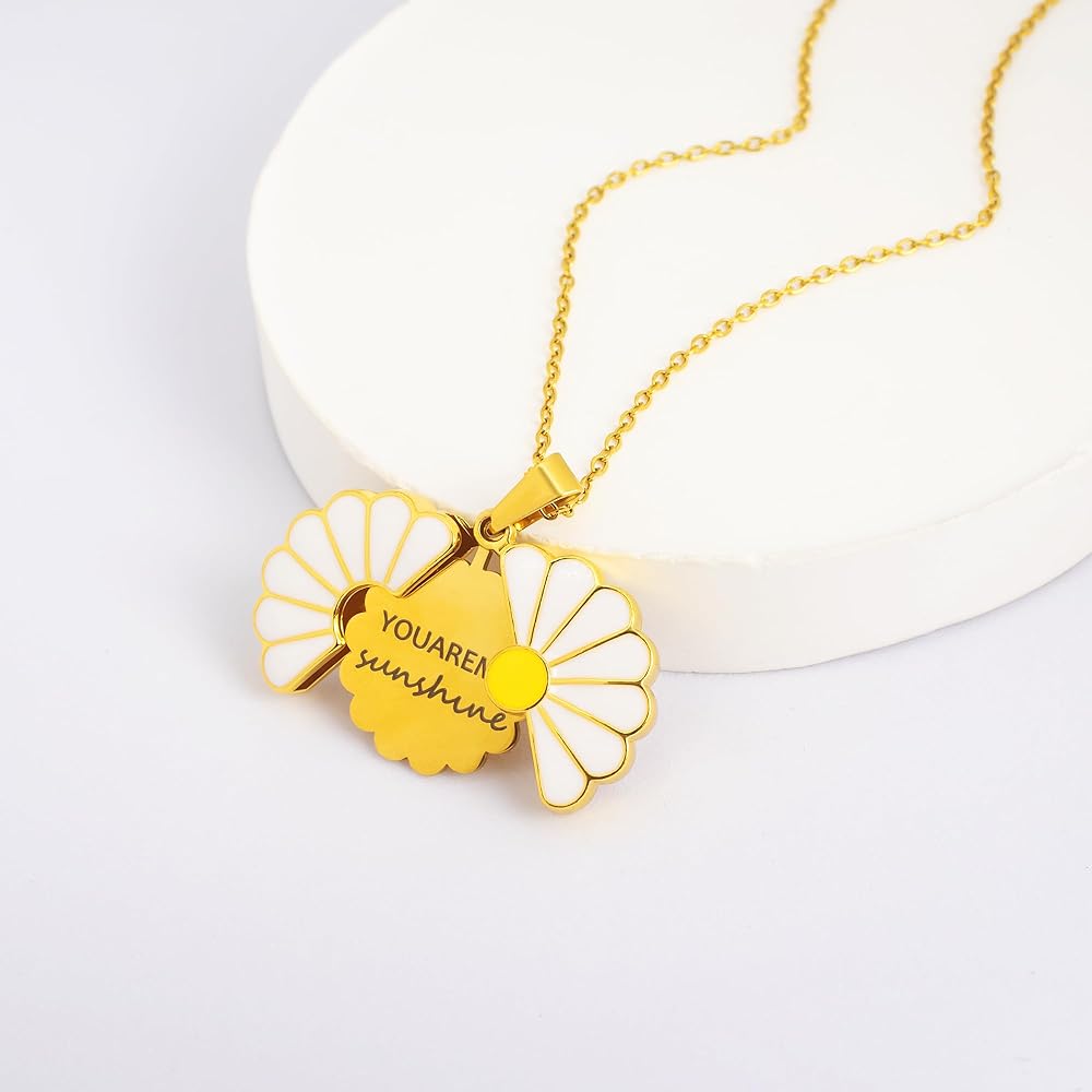 Edussy You Are My Sunshine Necklace - Sunflower Locket Jewelry Adjustable Necklace with Engraved Hidden Heartfelt Message Pendant Delightful Sunshine Gift for Women