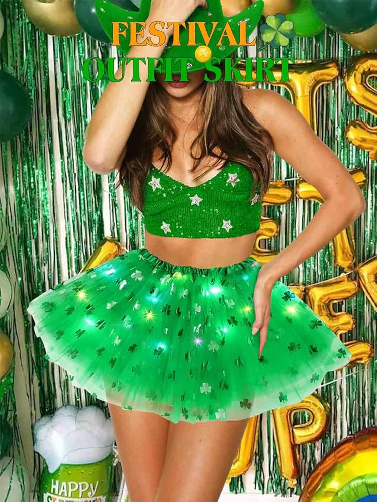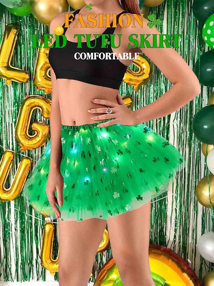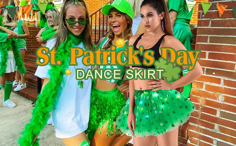 Shamrock tutu skirt is very suitable for Irish festival wear, very festive atmosphere. The light will shine more brightly in the dark and will get you more compliments.