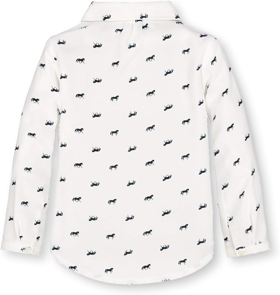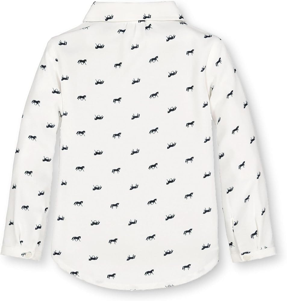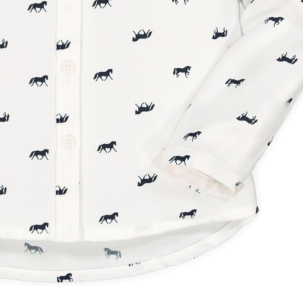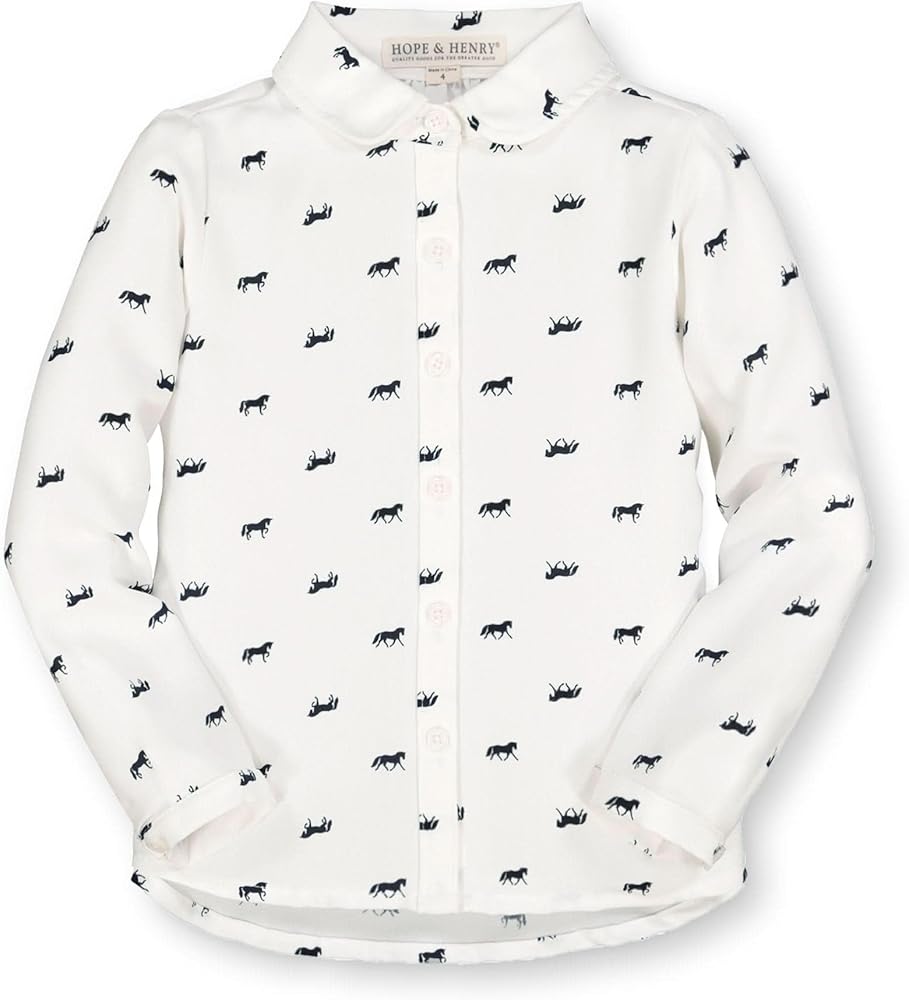 Our sweet button down shirt with a rounded peter pan collar is a shirt she'll be wearing all season long. Features pearlized buttons at the sleeve cuffs and center front. Top it with one of our pullover sweaters for a complete look!