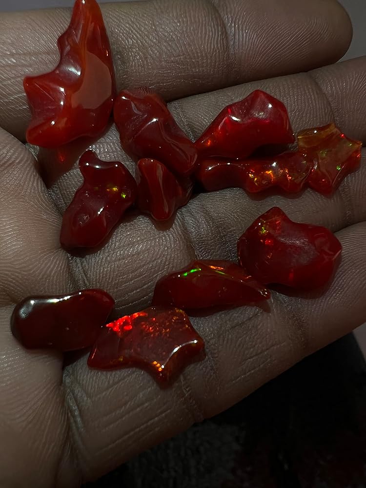 Red Ethiopian Opal Polish Rough, Natural Polished Opal, 5 Piece Ethiopian Opal Polished Rough, Top Quality Genuine Multi Fire Raw Polished Opal, Fire Opal Rough, Roughopal-1