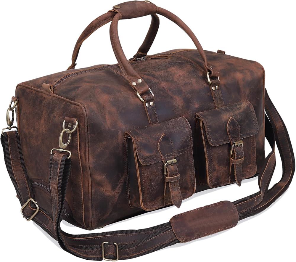 Premium Leather Construction: Our duffel bag is made from high-quality leather, providing a durable and timeless appeal. The rich brown color adds a touch of sophistication to your travel ensemble.