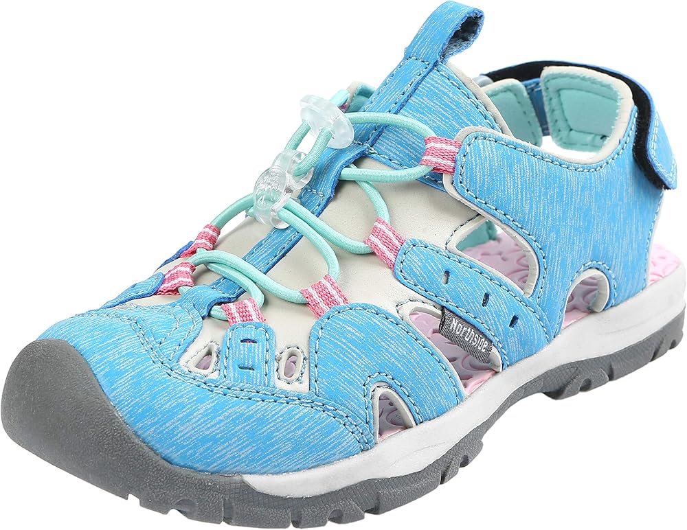 Outdoor boys/girls athletic hiking sandal offers closed toe water resistant construction/moisture wicking lining for all day comfort