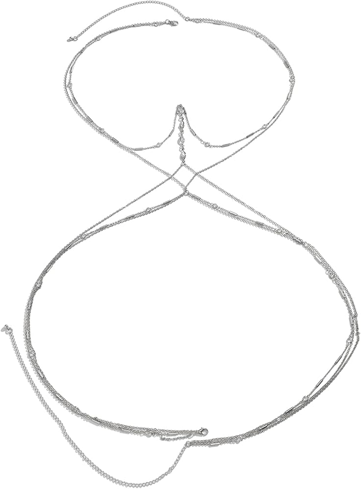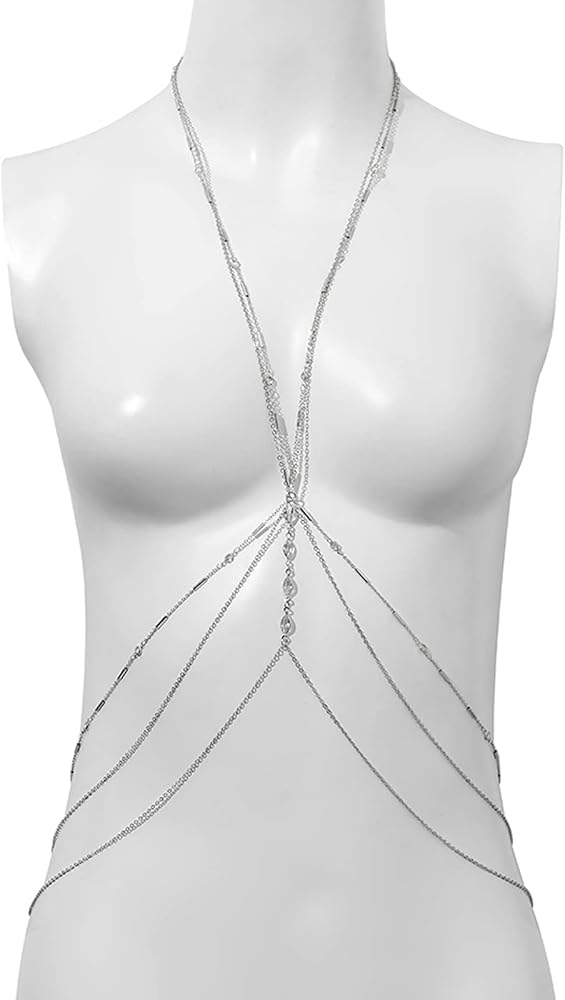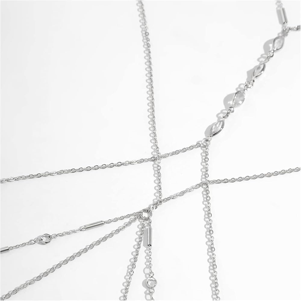 Simple Crystal Cross Harness Body Chain Jewelry Bikini Rhinestone Chest Body Chain Summer Sexy Multilayer Tassel Crystal Waist Belly Chain for Women Girls (Crystal chain-silver)