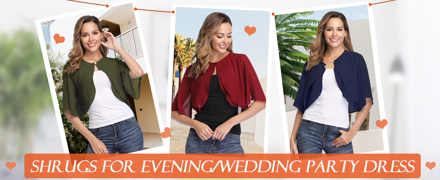 MULTIPLE OCCASIONS: Classic open front chiffon shrug, the shrugs is good for casual, vacation, wedding, beach, vacation, party, office, Work, Vacation, Daily Wear, it can bring you sunny mood and enjoy your life everyday.