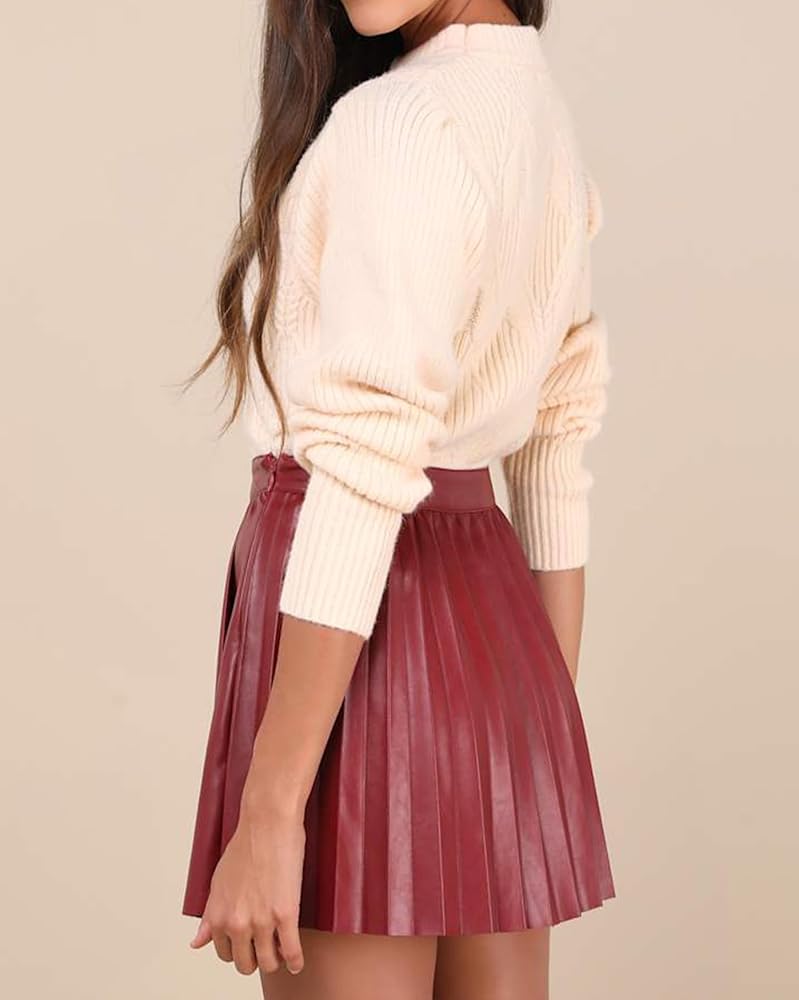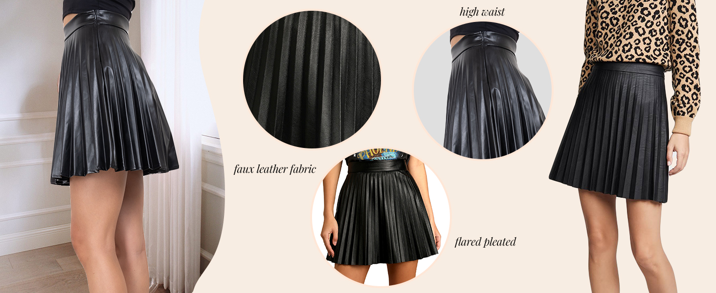 【Features】 Leather mini pleated skirt, classic not easy to fall out of time, black with boots sexy handsome, white with high heels elegant and lovely, is a must-have with fall and winter single product
