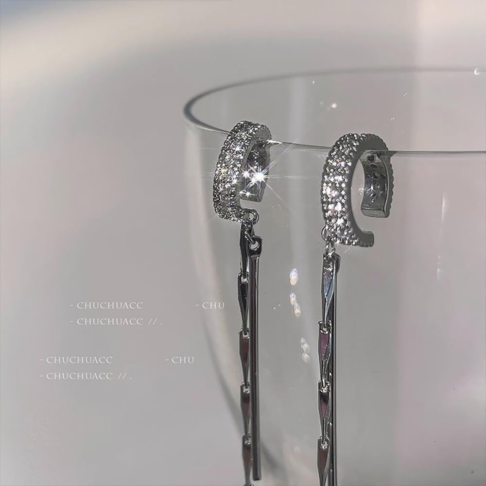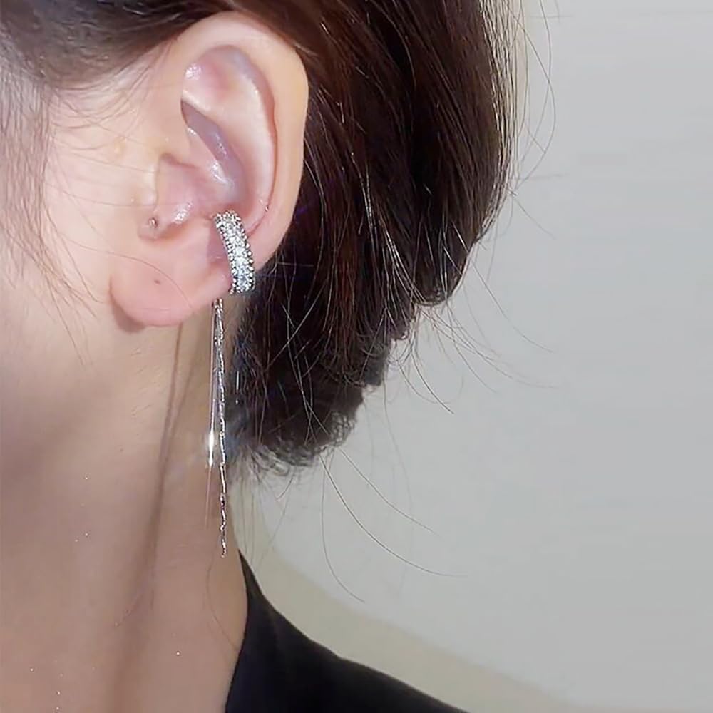 Rhinestone Long Tassel Ear Clip:These earrings made of alloy and crystal. Highly polished comfortable for wear.