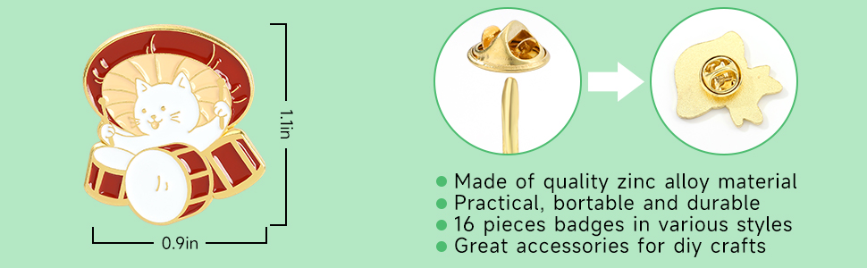 Material Science:The backpack enamel pins made from high quality alloy with enamel,enamel pins pack Handmade Painted Coating,don't worry about paint falling off.The handy butterfly button makes it easy to put on and off the enamel lapel pin.Made from environment friendly material, no harm to your body and health.